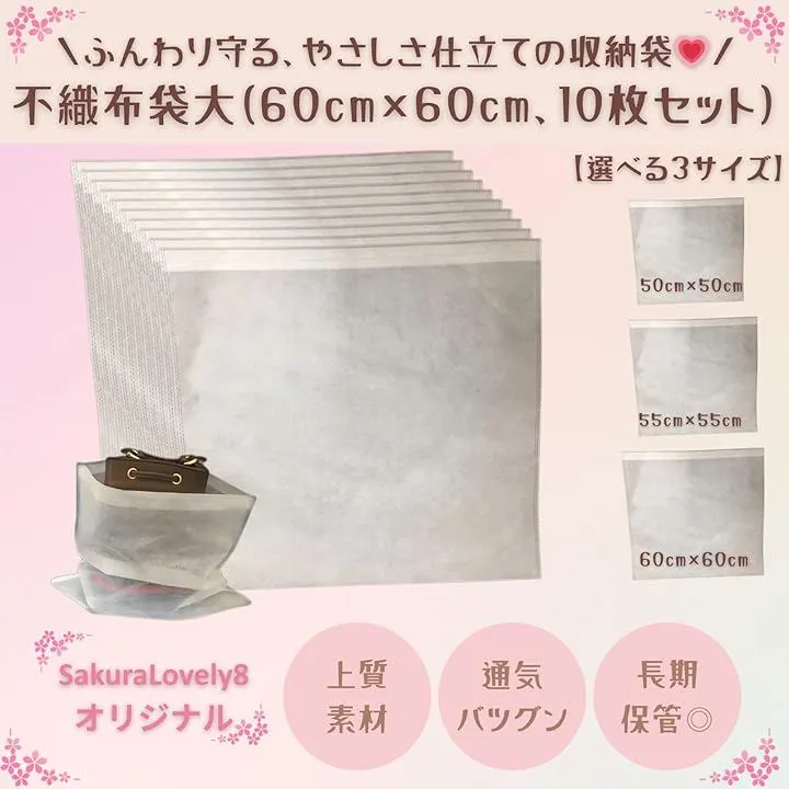 SakuraLovely8 不織布 袋 バッグ収納 保管袋 ホコリよけ 通気性 衣類 靴 ホワイト (60cmx60cm)