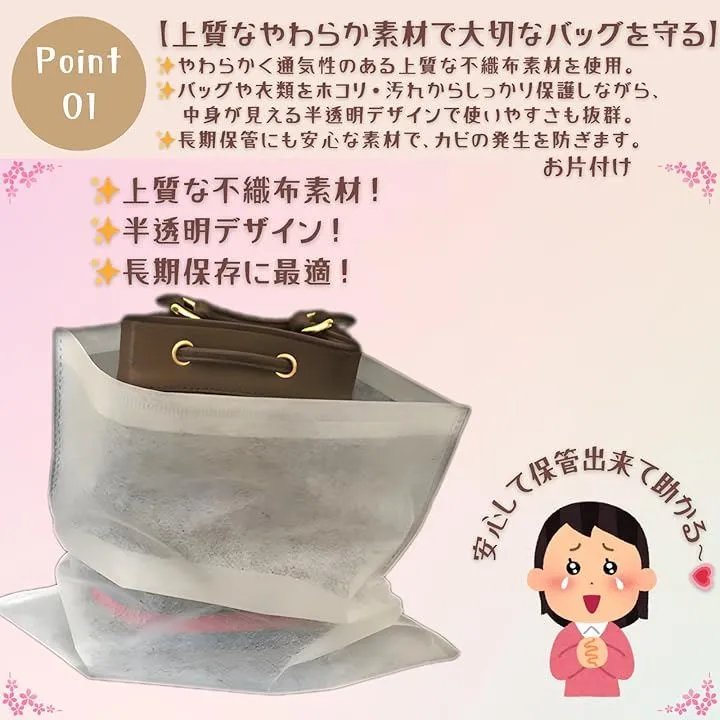 「上質なやわらか素材で大切なバッグを守る」 やわらかく通気性のある上質な不織布素材を使用。