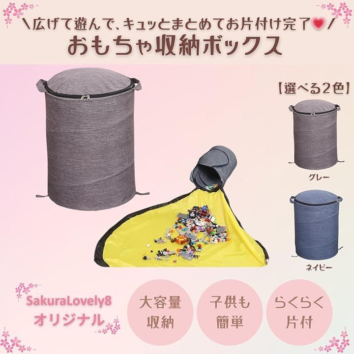 SakuraLovely8 おもちゃ収納ボックス プレイマット 折り畳み式 玩具収納袋 お片付け簡単 (グレー)