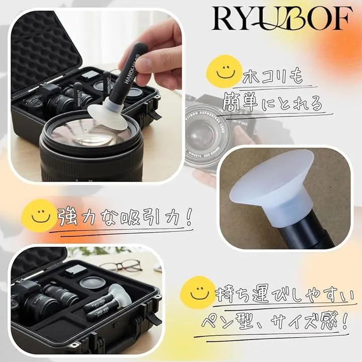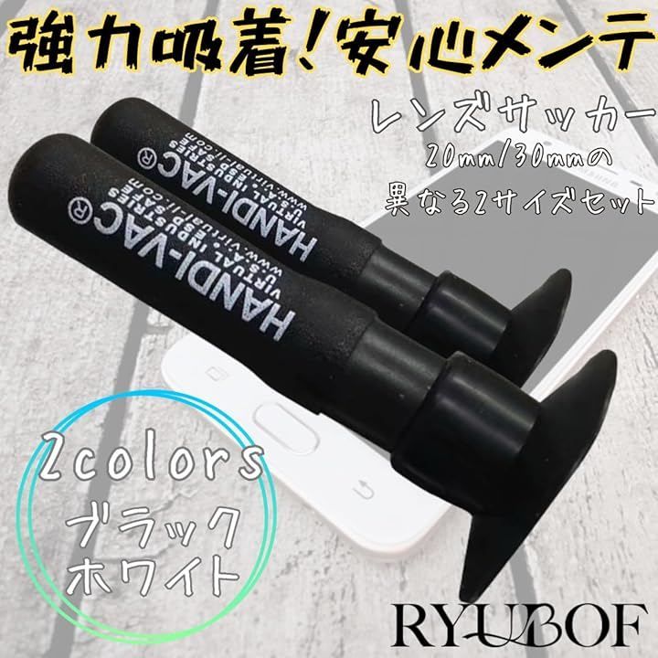 Ryubof レンズペン レンズサッカー 吸盤ペン 静電気防止 カメラレンズ メンテナンス クリーニング 約20mm 約30mm 2種セット 指紋防止 携帯用 (ブラック)