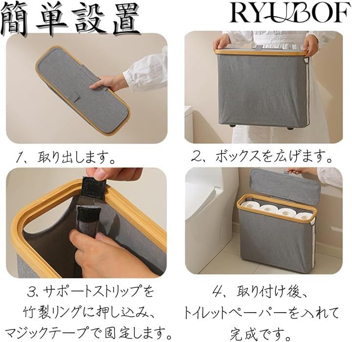 「軽くて丈夫な素材設計」 トイレットペーパー ボックスは600Dオックスフォード生地と竹製ハンドルを採用し、軽量ながら耐久性と防水性に優れ長く快適に使えます。