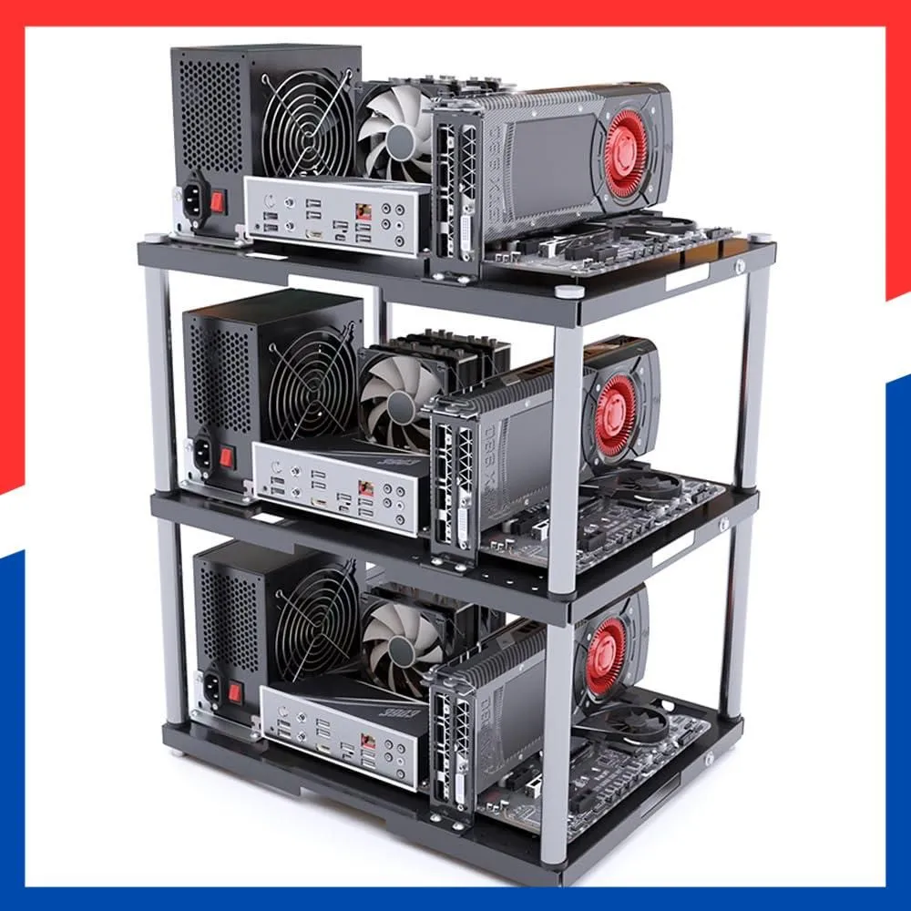 CRBUKESI オープンフレーム PCケース 多段重ね対応 金属製 ラック型 組立式 ATX/MATX/ITX対応 自作PC用