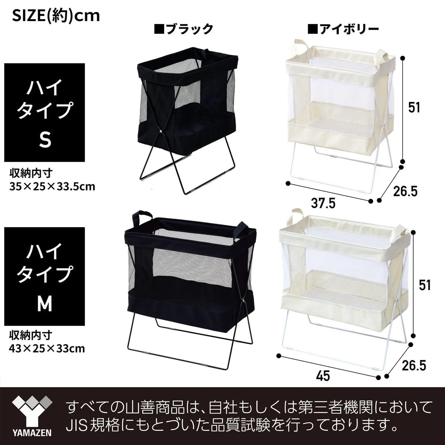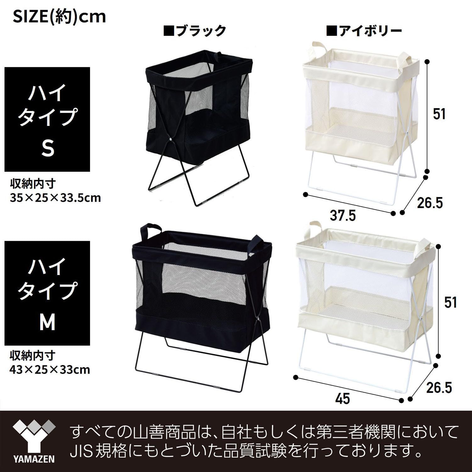 特価商品 通気性 折りたたみ S(幅37.5×奥行26.5×高さ51cm) (ハイタイプ) 収納 収納ボックス ランドリーラック かんたん組み立て 荷物置き ブラック 山善(YAMAZEN) HTB-SH(BK)