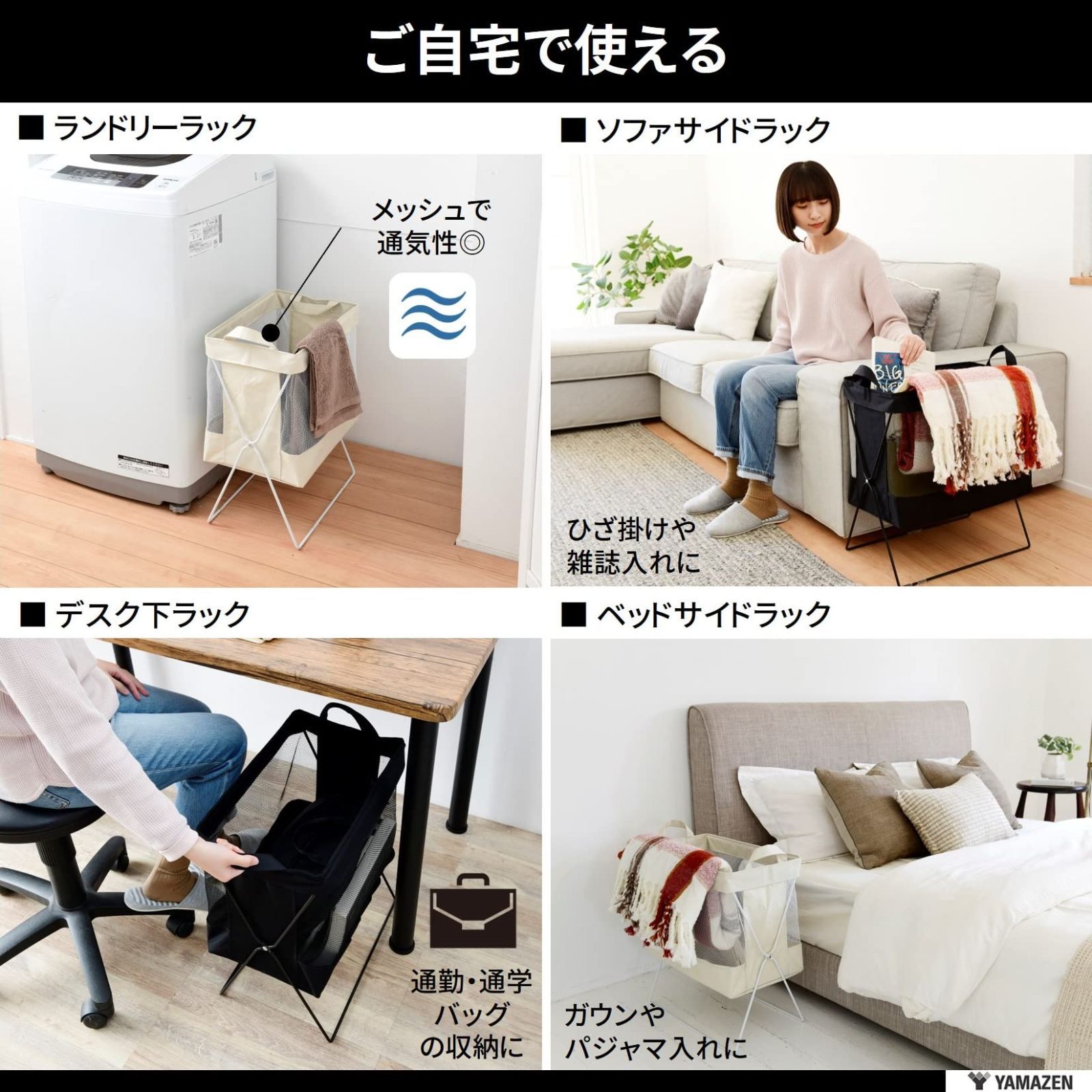 【自宅でも使える】 側面はメッシュ素材なので通気性が良く、ランドリーバスケットとして使えます。その他、ソファサイドラック、ベッドサイドラック等あらゆる場面で活躍します。