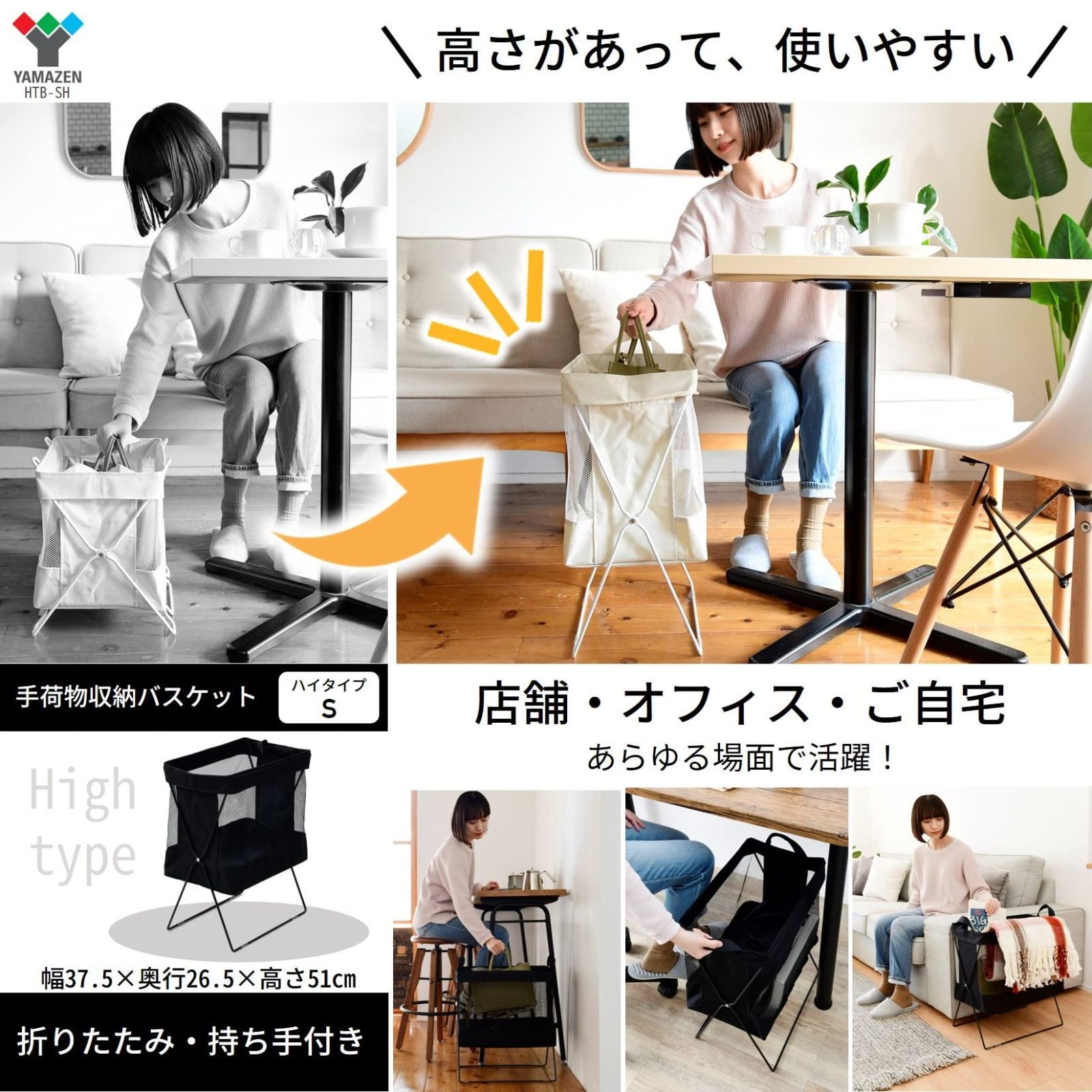 【高さがあって、使いやすい】 山善で人気の手荷物収納バスケットから、ハイタイプの登場です。高さがあるので、大きくかがまなくても中身が取り出しやすく、飲食店や店舗などでお客さんに喜んでいただける仕様です。待合室や集会所などでも活躍します。