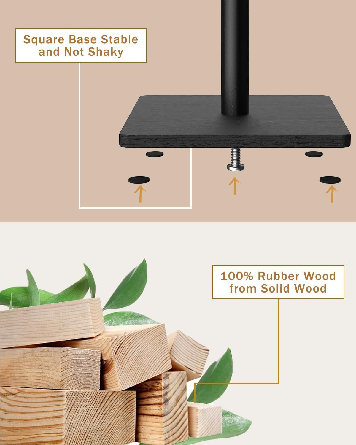 抜群の安定感:コートハンガーは、安定性と頑丈さを備えた太いポールと幅広の頑丈なベースでできており,耐荷重性が良く揺れることはありません 四角に滑り止めが付いています,主杆直径:3.2cm,静止承重:33kg 台座サイズは30 × 30cmです,安心して使えます。