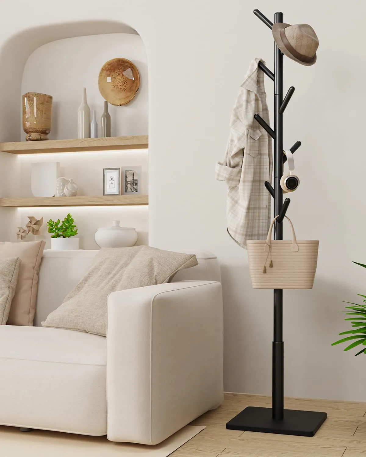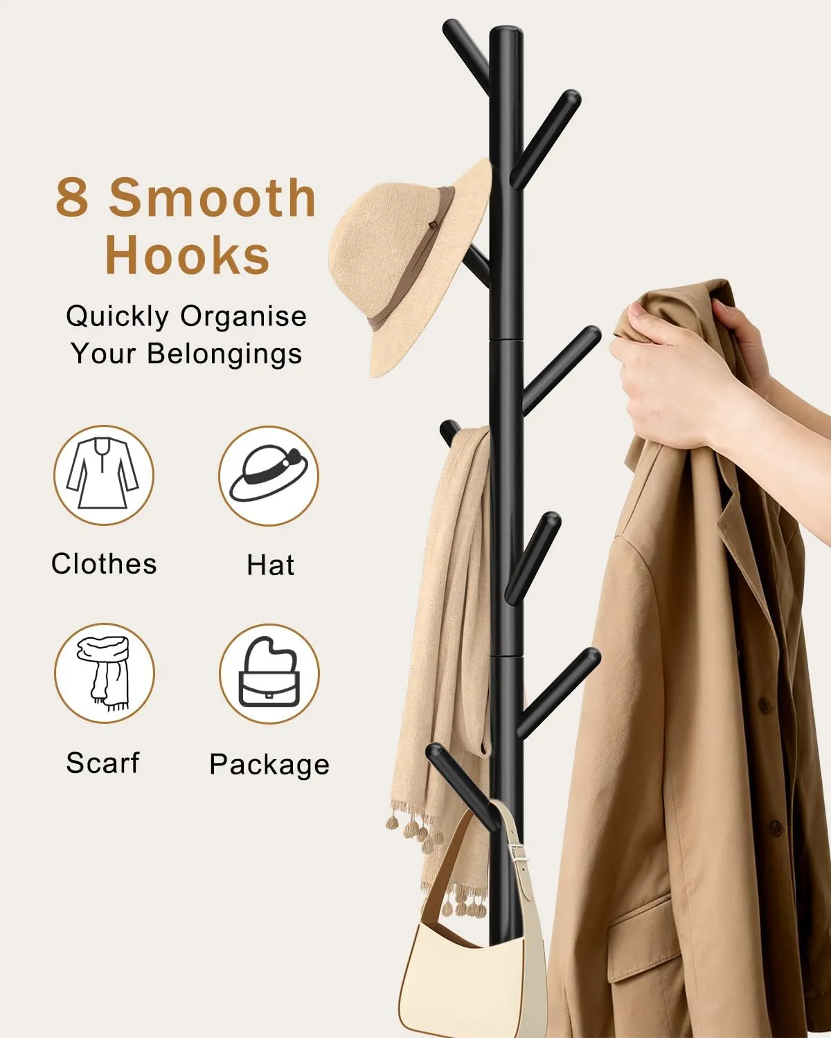 省スペース 収納力抜群:コートハンガーには8つのフックがあり,家庭生活に不可欠なコートハンガーです,部屋、リビング、玄関、どこでも置けます,洋服掛け、帽子掛け、カバン掛けとしてご使用いただけます。