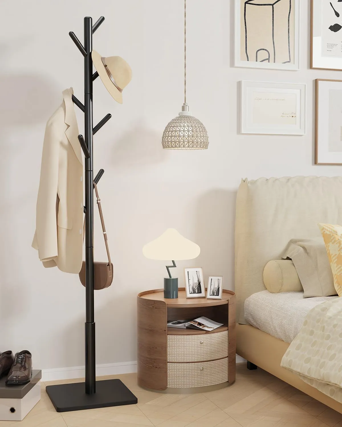 森から流れ出る小枝のような、自然の温もりに満ちた木製ポールハンガーです。