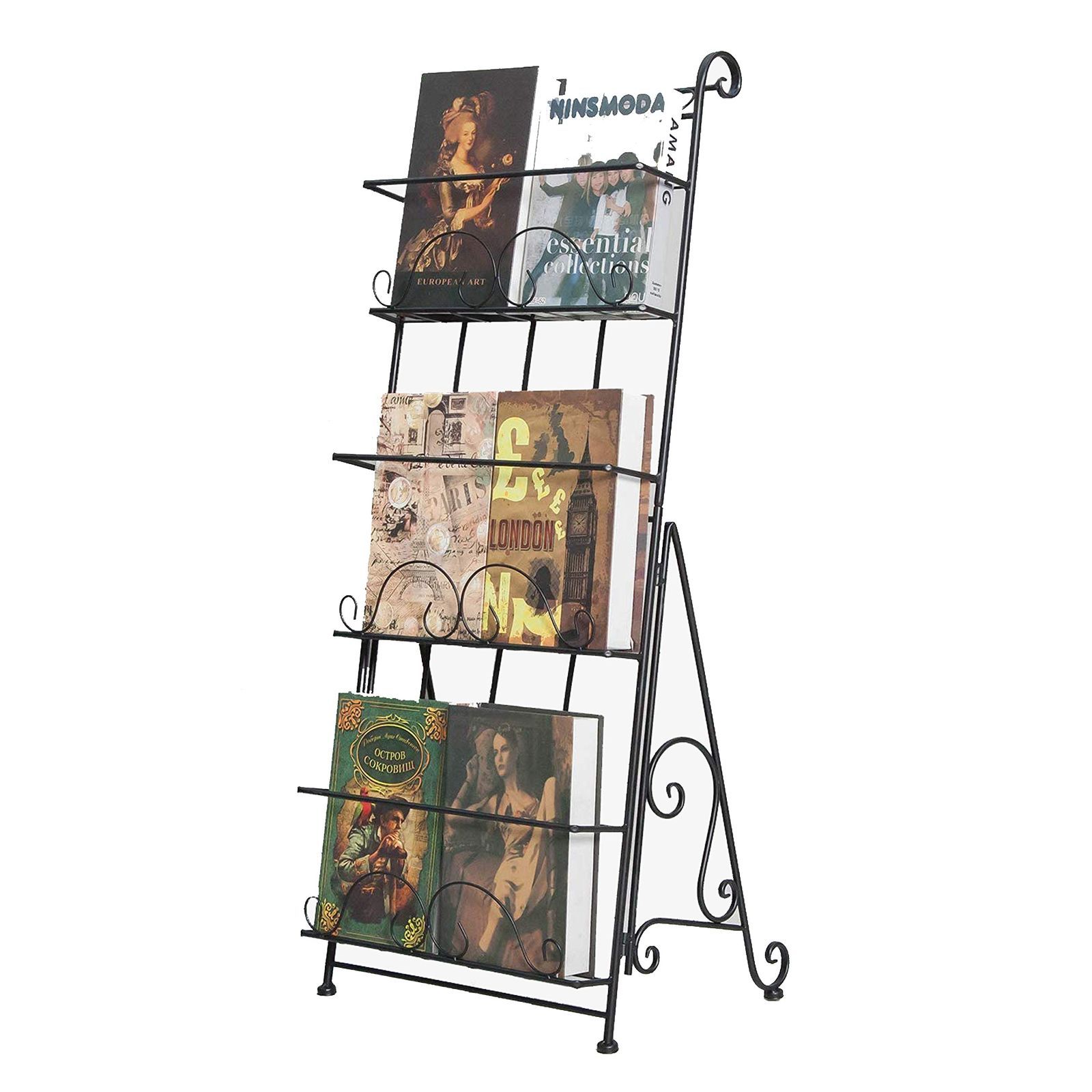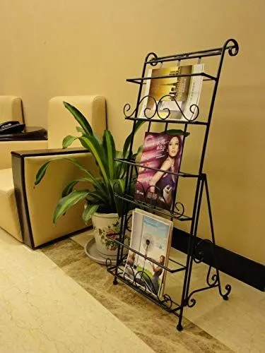 特価 カタログスタンド マガジンスタンド 約幅40×奥行35×高さ103cm 大容量 スチール製 3段 待合室 学校 パンフレットスタンド 図書館用 ブラック BQKOZFIN 北欧 おしゃれ