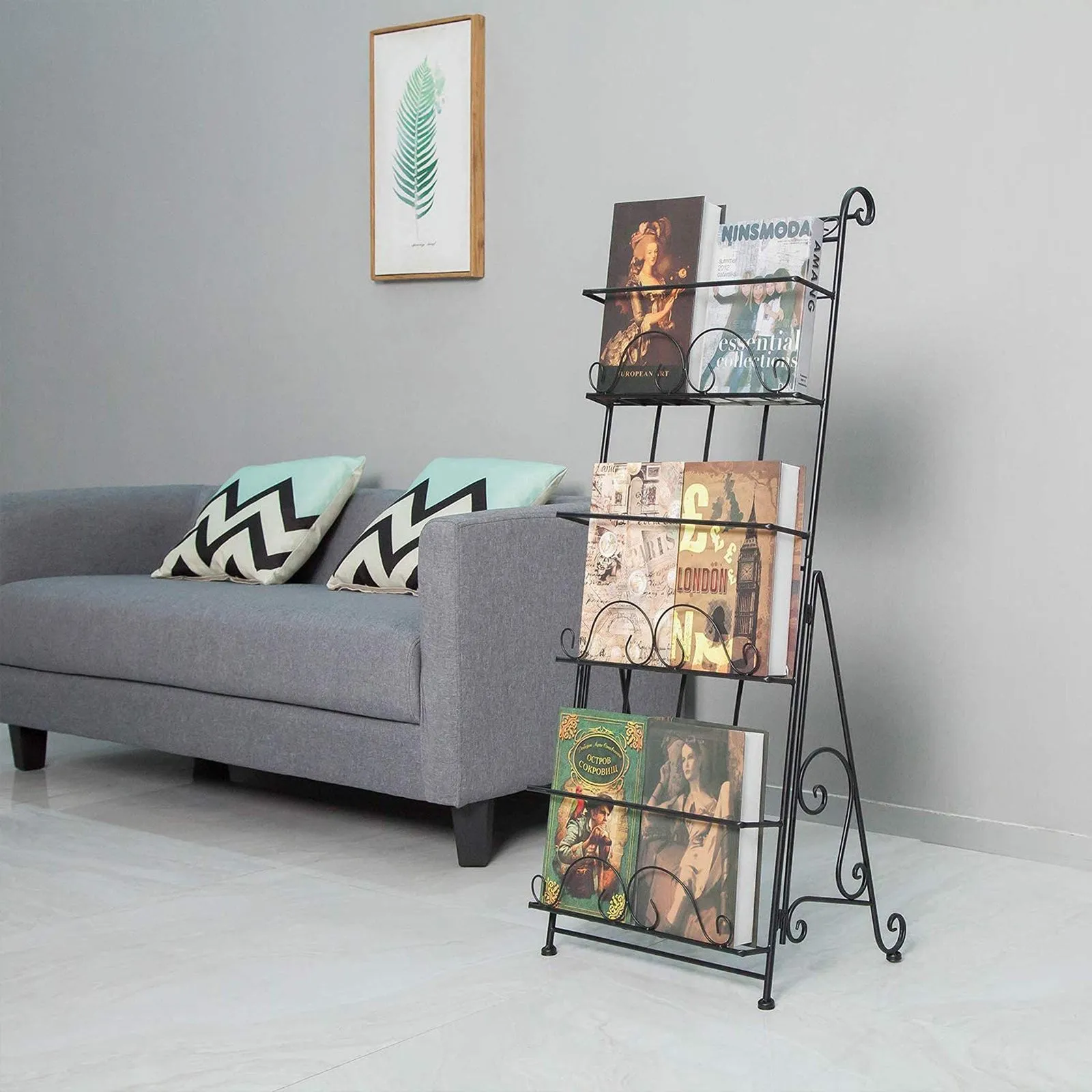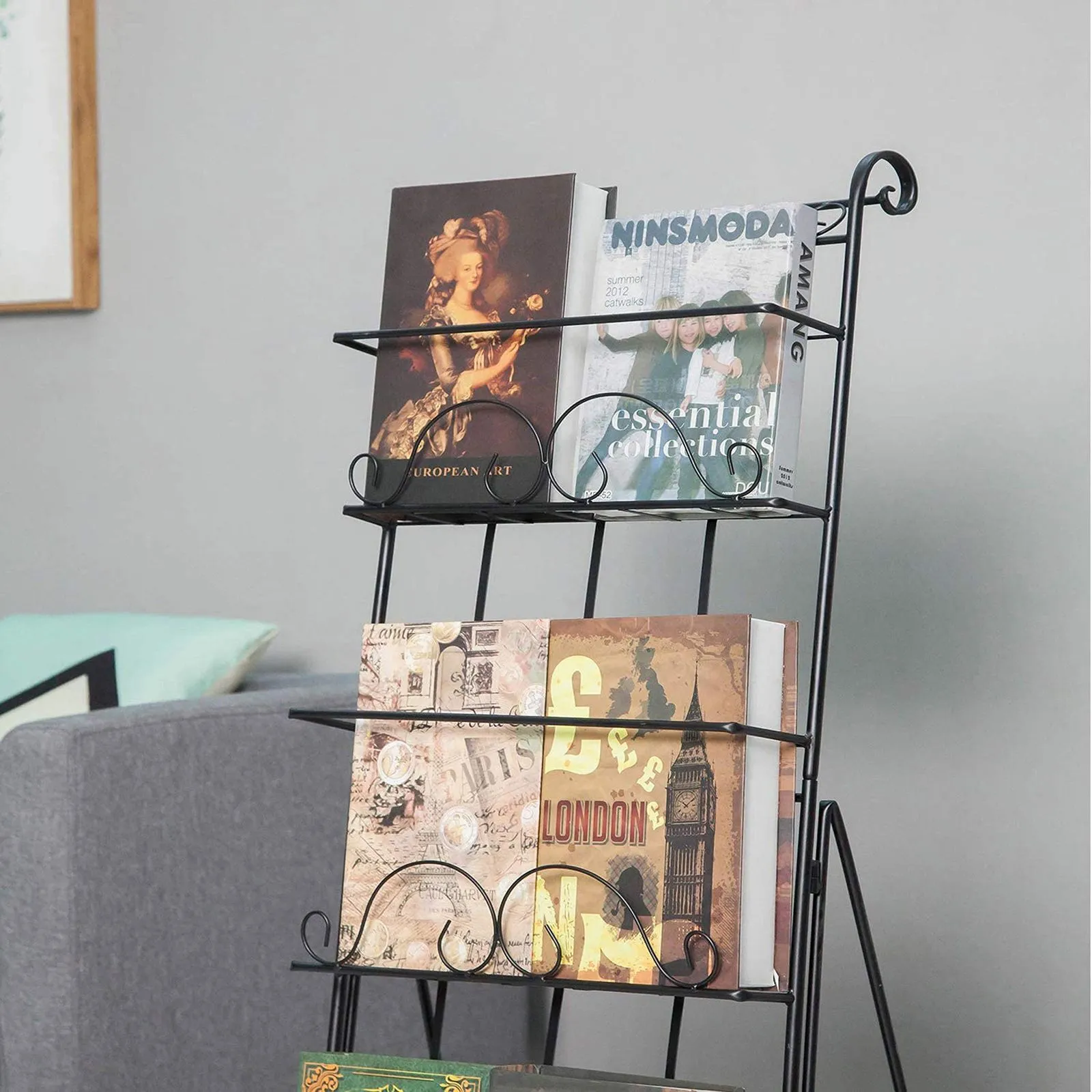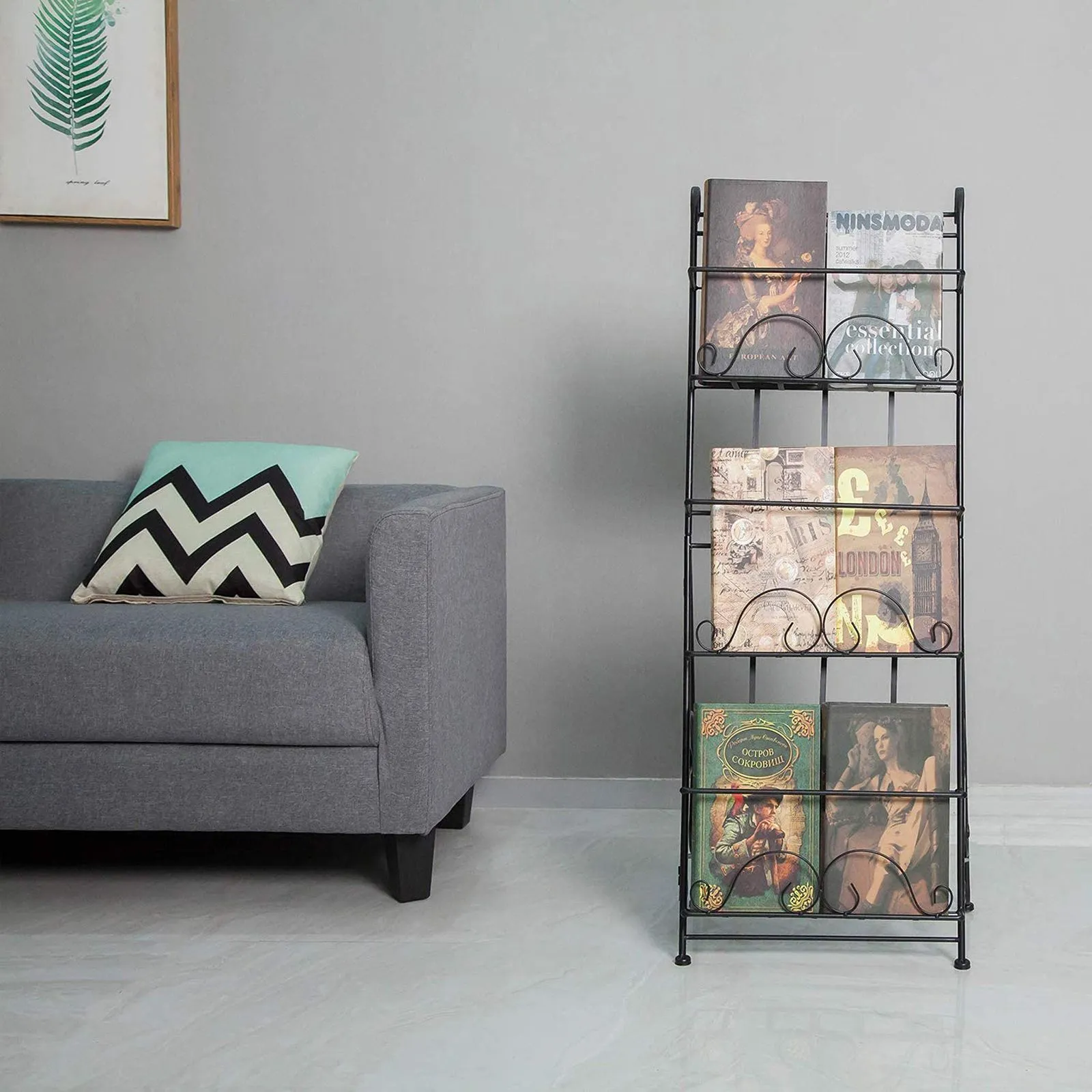 【スマートストレージ】床置き型マガジンホルダーは、読み物を1か所に保管・整理します。