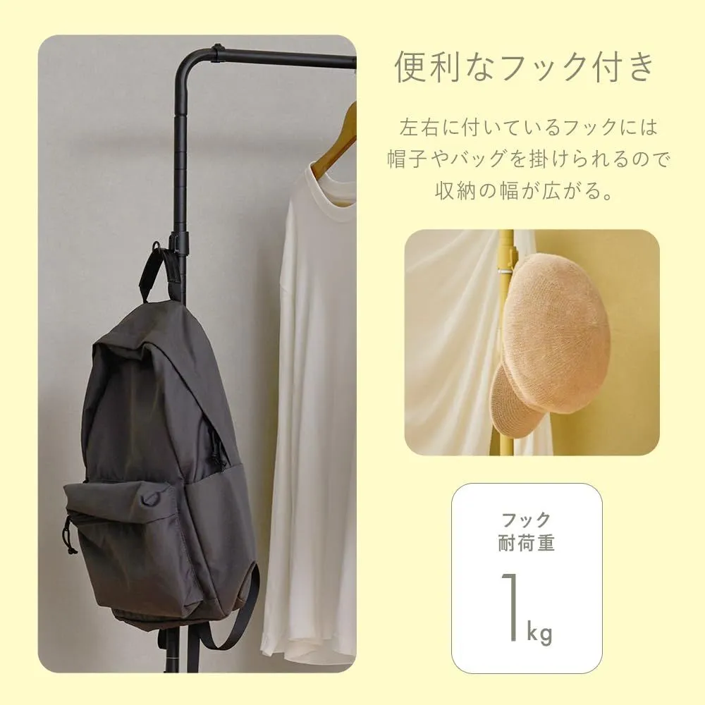 左右に付いているフックには、帽子やバッグを掛けられるので、収納の幅が広がる。