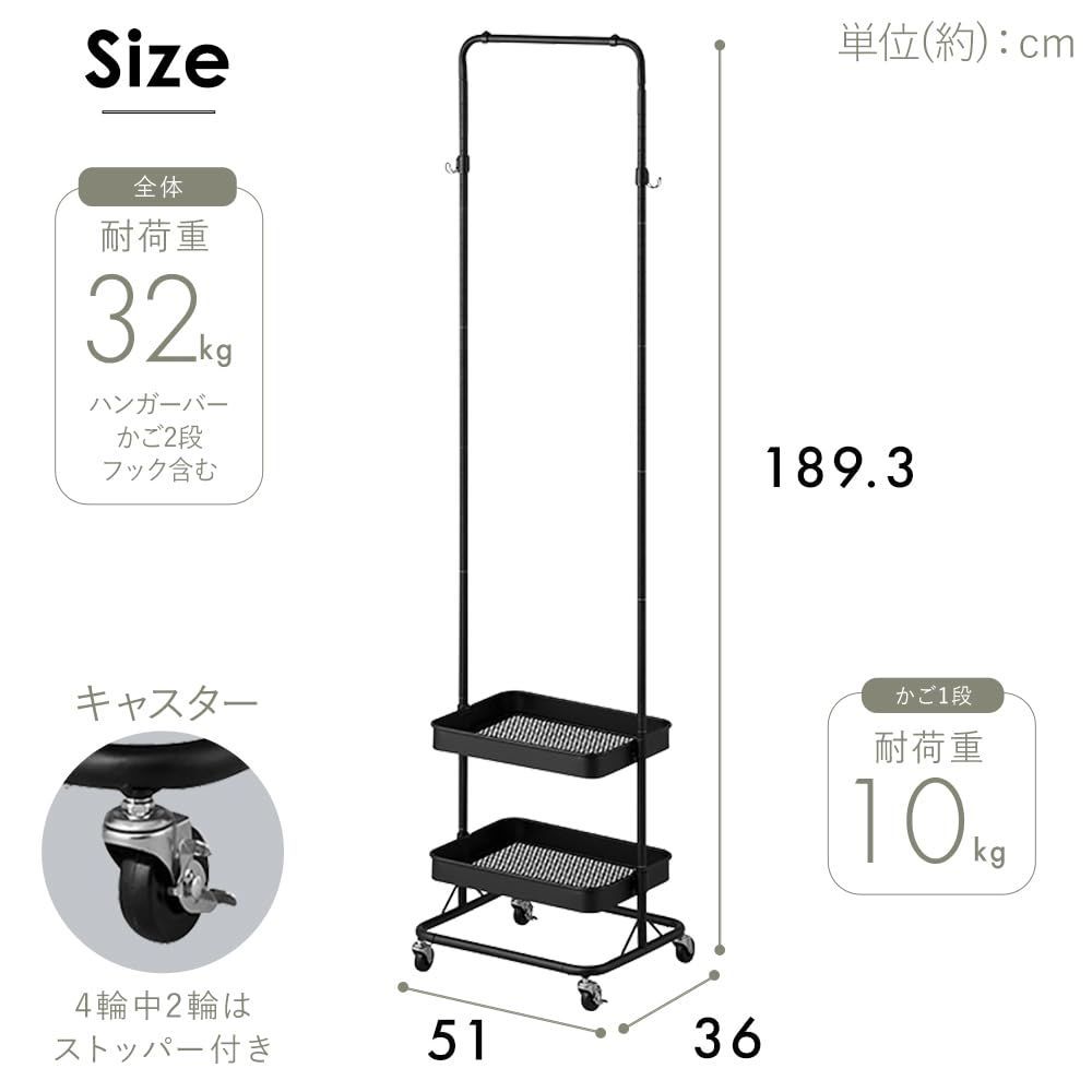 ●耐荷重 かご1段あたり:約10kg ハンガーバー:約10kg フック:約1kg 全体:約32kg