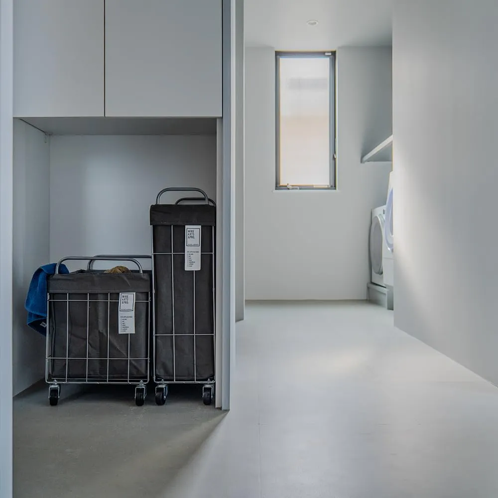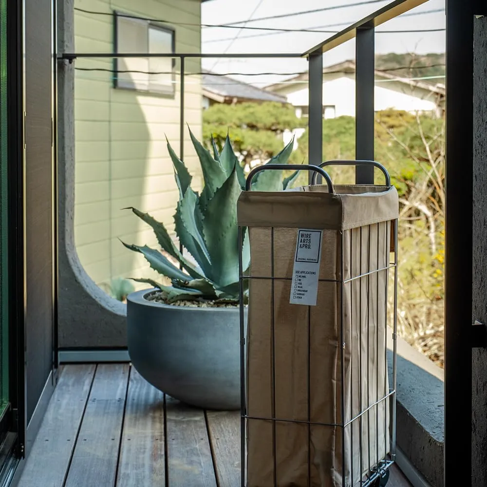 ワイヤーとファブリックを合わせたランドリーストレージシリーズ。 既存サイズの「折り畳み28L」と横幅・奥行を同じ規格にしているので、 用途によって横並びで使用しても、見栄えが悪くなりません。 カバーはラミネート加工を施しておりますが、手洗いが可能。生地に汚れが付着しづらく、汚れた洗濯物などを入れても安心して使い続けることができます。キャスター付きはお部屋間の移動も楽に出来るので、 体にも負担を掛けることが無く、スムーズに運ぶことが出来ます。 主にアメリカ国内のGENERAL STORE向けに依頼、製造を行なっている工場にて見つけた、スチール素材の軽くて頑丈な、どこか50年代60年代のアメリカのユースホテルで使っていたような雰囲気を感じさせるワイヤーフレーム。何か懐かしい佇まいの新しいプロダクト。 「WIRE ARTS & PRO.」 ・今後、ワイヤーを基本の素材として製品の幅を広げていくブランドをイメージ。 :ARTS-お客様にとってワイヤーで、新しい価値の商品を製作する。 :PRO.-プロダクトとプロデュース、プロフェッショナルなどの意味を含ませています。