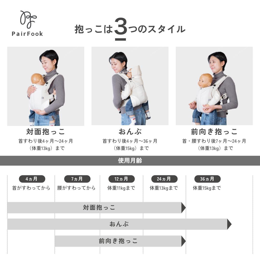 PairFookブランドのこだわりと安心設計:PairFook(ペアフック)は「親になるすべての人に、やさしさを届けたい」を理念に、ママやパパの声を反映した育児アイテムを開発。抱っこ紐コンパクトタイプはSGマーク取得で安全性を確保し、日常使いから長時間移動まで安心して使えます。価格よりも品質や安全性を重視する方に選ばれ、祖父母からのギフトにも喜ばれる信頼のブランドです。