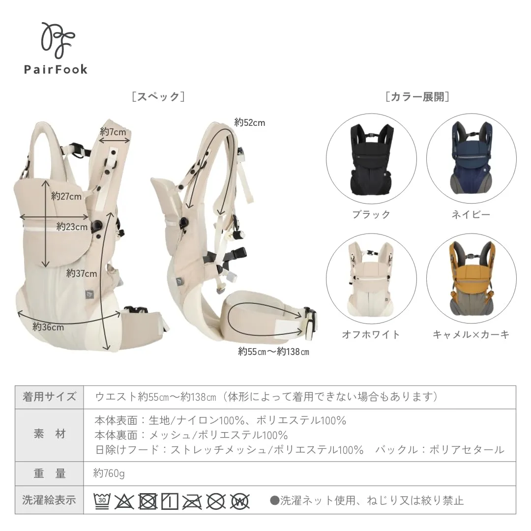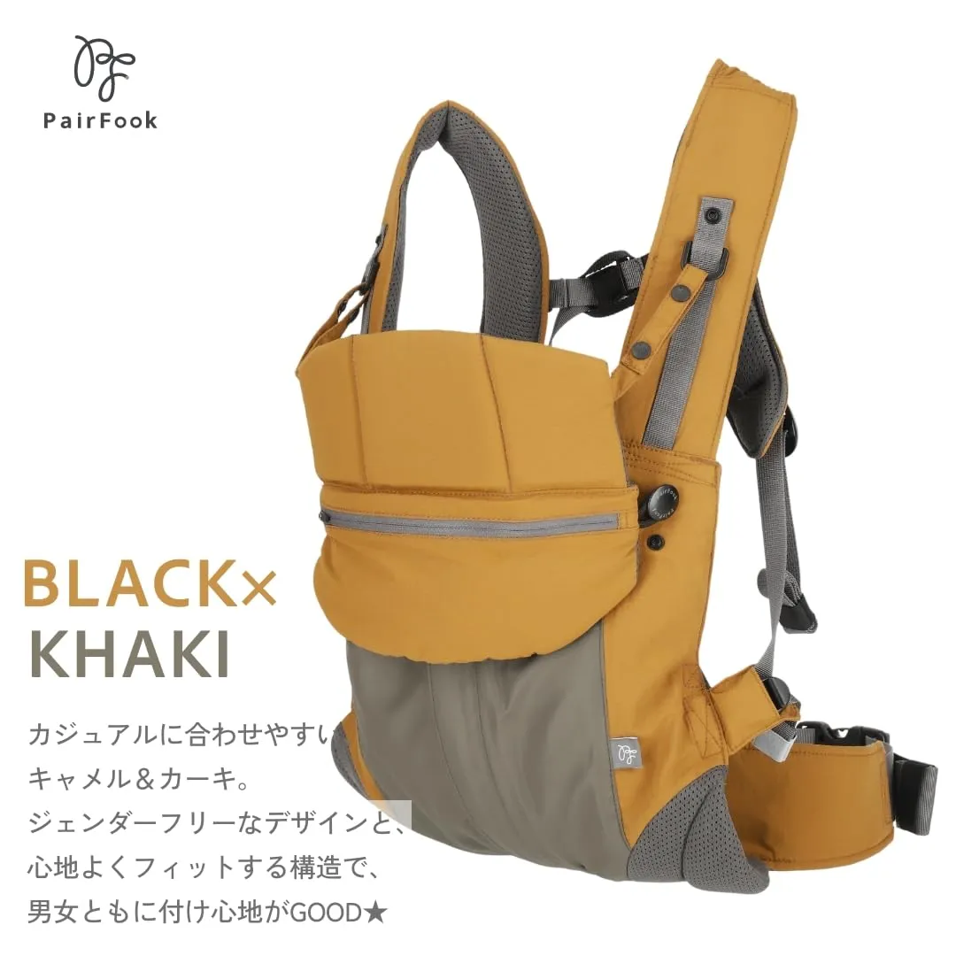 新品 PairFook(ペアフック)抱っこ紐 コンパクトタイプ 超軽量560g 折りたたみ収納ポーチ付 前開き簡単装着 SGマーク取得 YKKパーツ使用 UV日よけフード 保冷剤対応ヘッドサポート付 キャメル×カーキ
