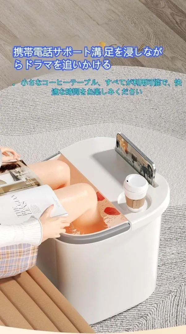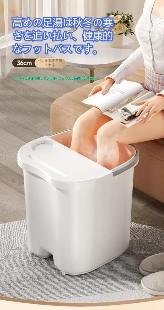 【保温しやすい厚手プラスチック】 厚手素材でお湯が冷めにくく、長時間の足湯でも快適。電源不要なので、リビング・寝室・脱衣所など場所を選ばず使えます