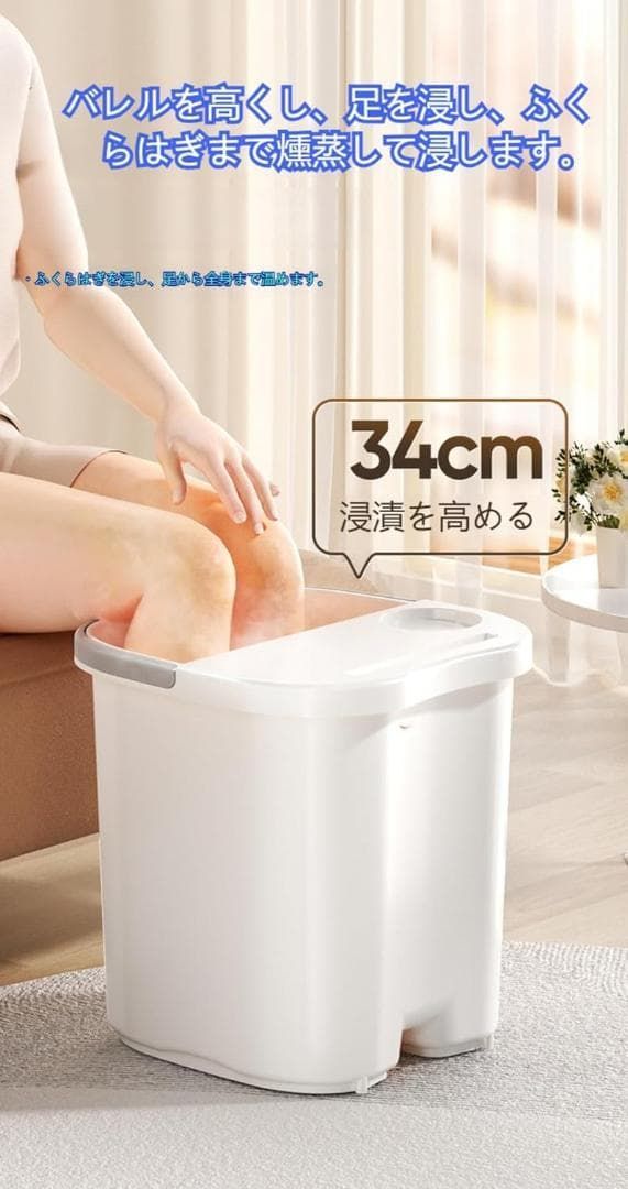 深型足湯 バケツ保温 厚手フットバス 家庭用 健康マッサージ プラス低め 白色