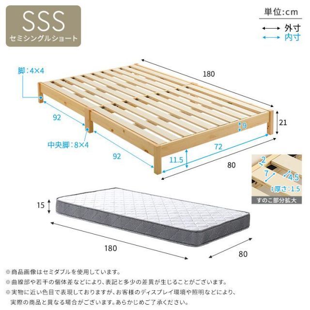 【商品サイズ】 ベッドSSS:(約)幅80×奥行180×高さ21cm マットレスSSS:(約)幅80×奥行180×高さ15cm(コイル数:234個)