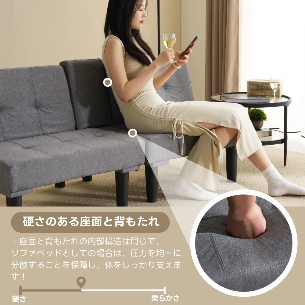 【調節可能な背もたれ】背もたれは3段階で調節可能で、それぞれ105度、135度、180度に設定でき、お好みに合わせて角度を変えられ、より快適な座り心地が提供されます。これにより、ソファとしてリラックスできるだけでなく、180度に倒すとベッドとしても使えるので、日常の小休みや、急な来客時の仮眠などに最適です。