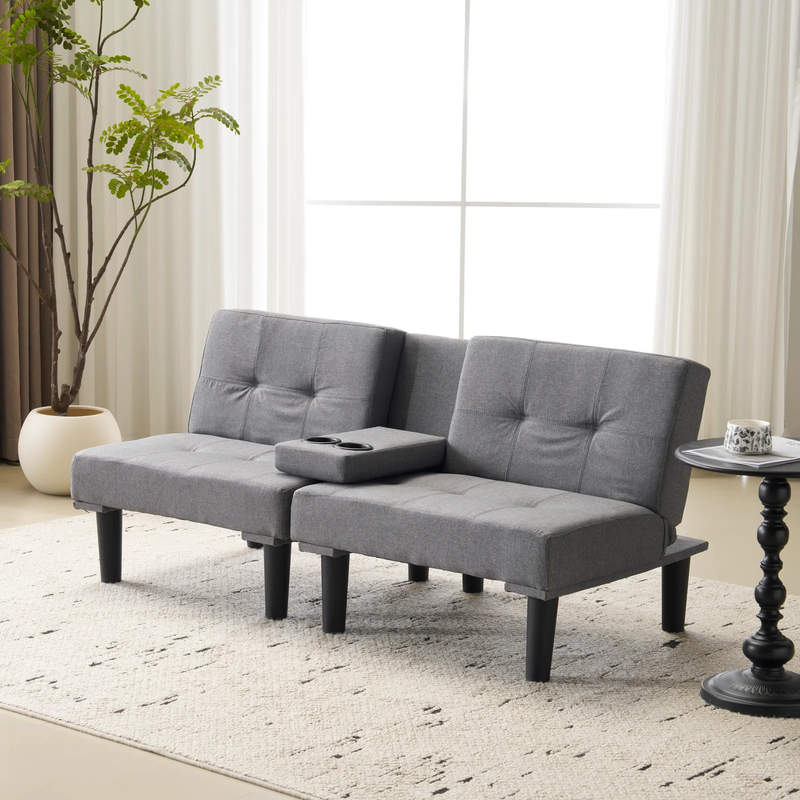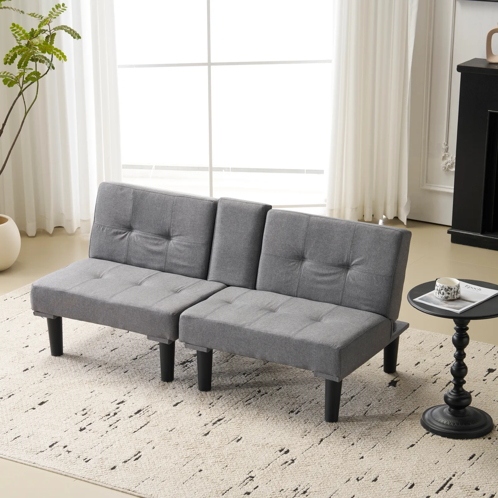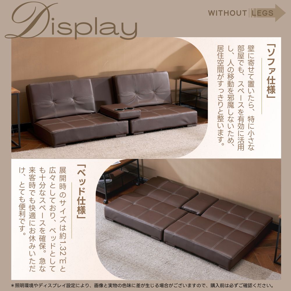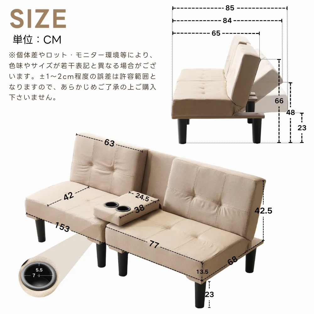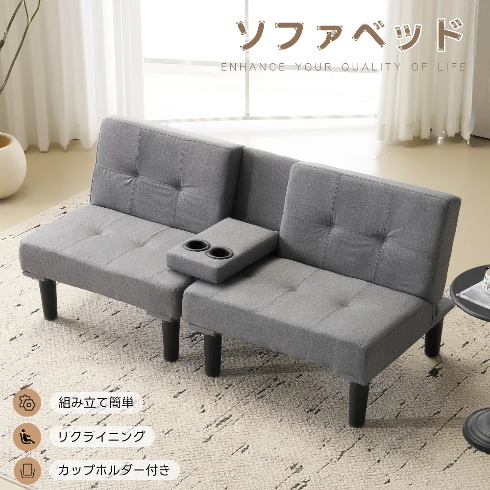 ソファベッド ソファ ベッド カップホルダー付き 組立て簡単 事務室用 サロン用 来客対応 ロータイプ 2人 リクライニングソファ 背もたれ3段階 取付可能な脚 省スペース 一人暮らし お手入れ簡単 コンパクト 幅153㎝ ファブリック 【グレー】