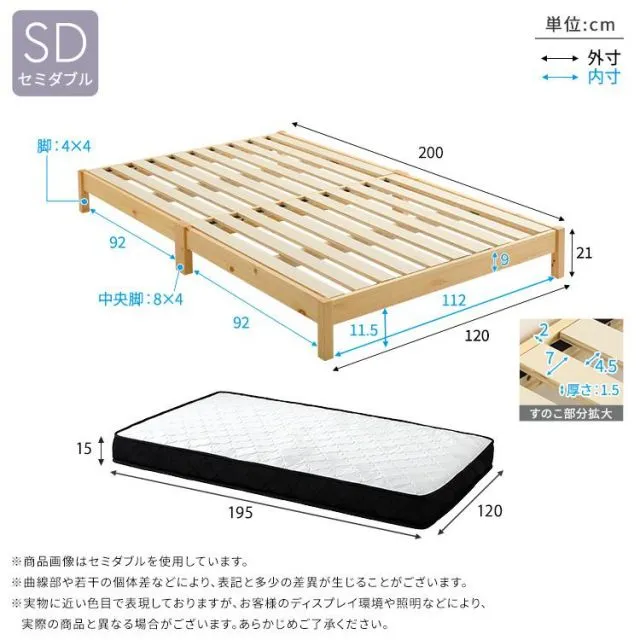 【商品サイズ】 ベッドSD:(約)幅120×奥行200×高さ21cm マットレスSD:(約)幅120×奥行195×高さ15cm(コイル数:589個)