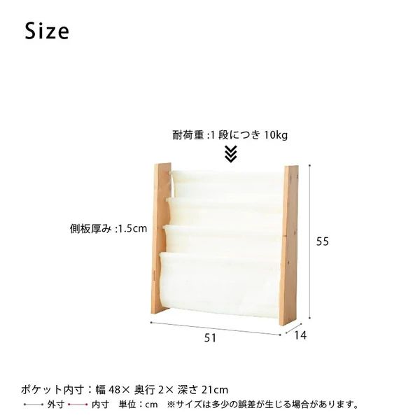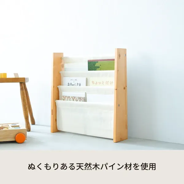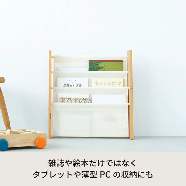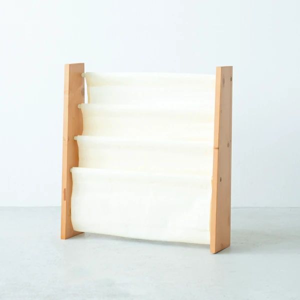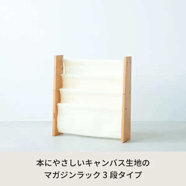 キャンバスマガジンラックW ワイド 3段 本棚 北欧風 絵本 ラック 収納 雑誌 木製