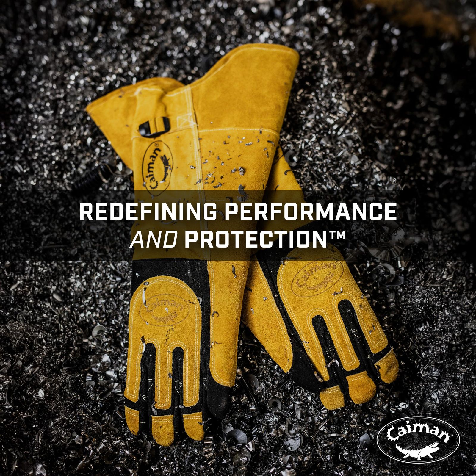 新品 Caiman カイマン Kontour コントアー ブラック アメリカンディア スキン (鹿革) / ボアハイド (豚革) コットンフリース ライナー 溶接 グローブ ロングカフ (L)