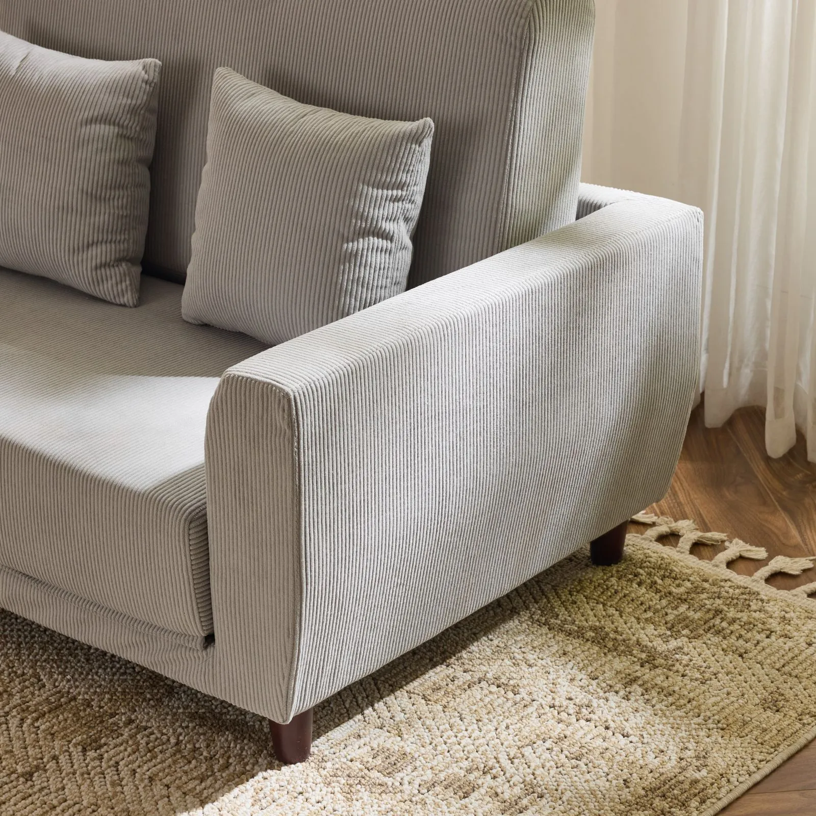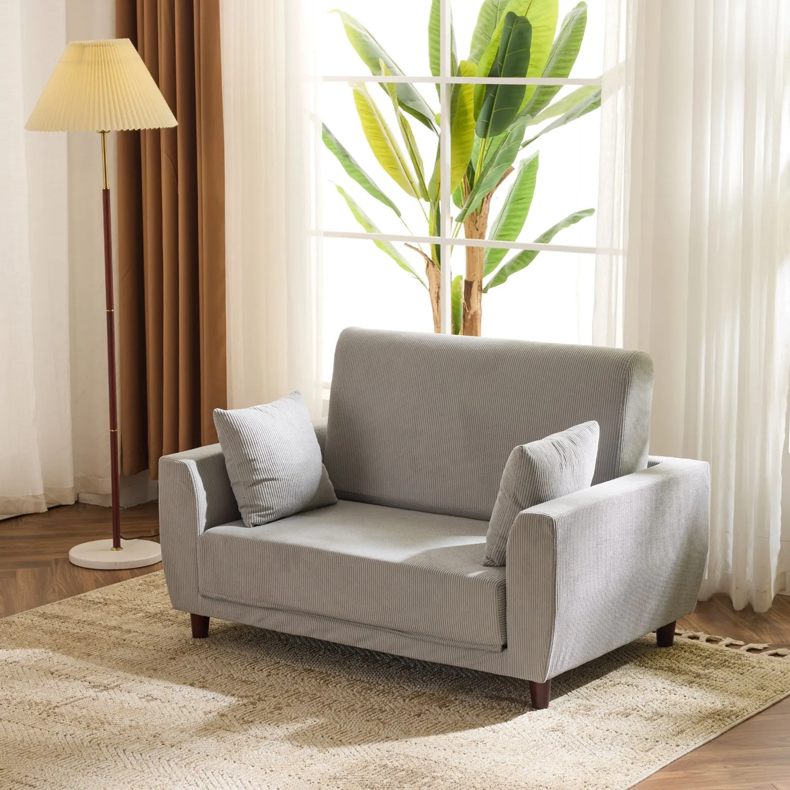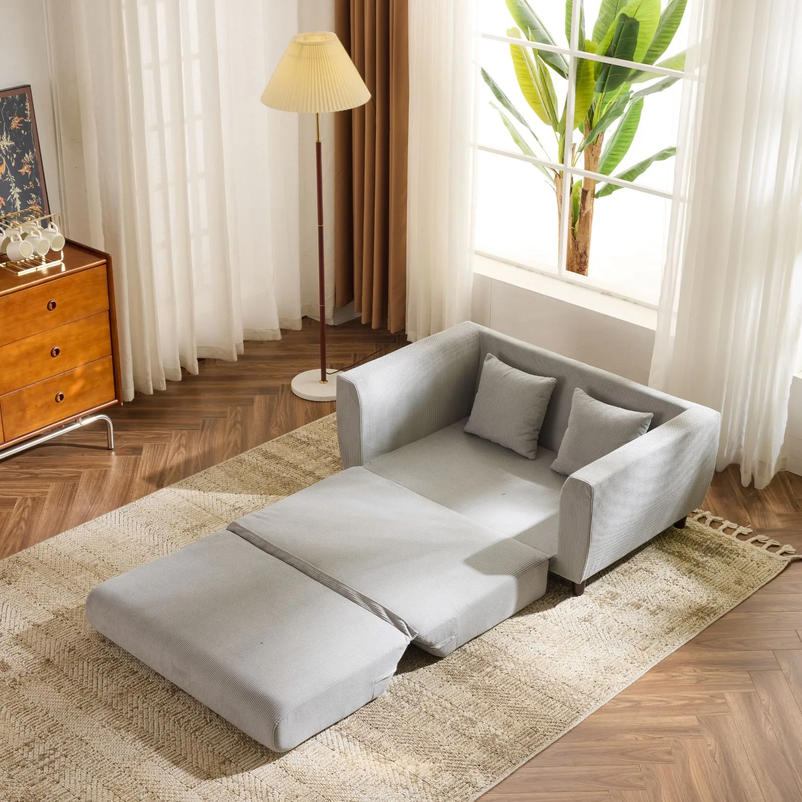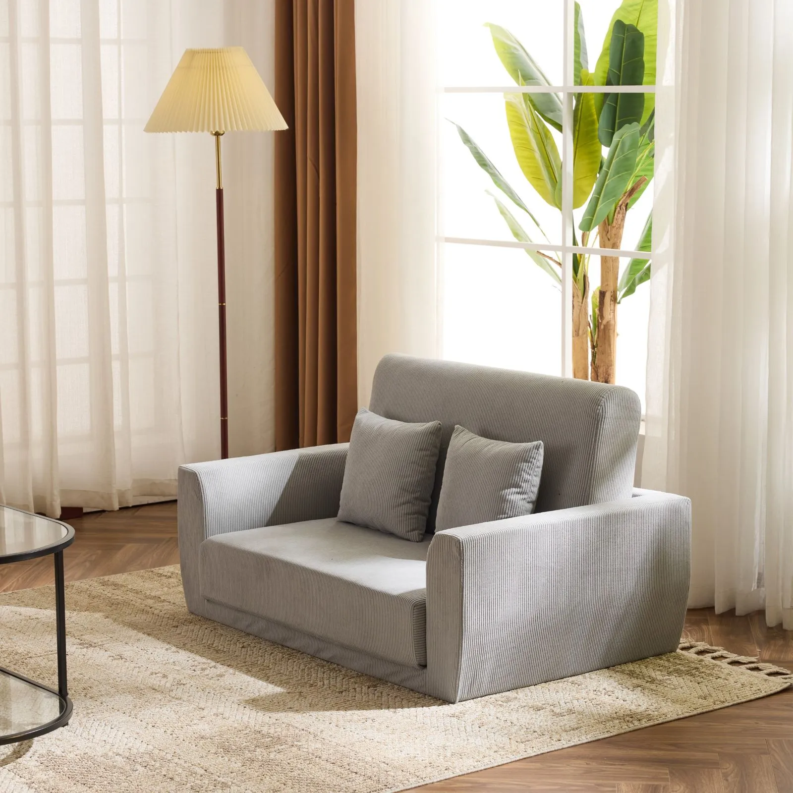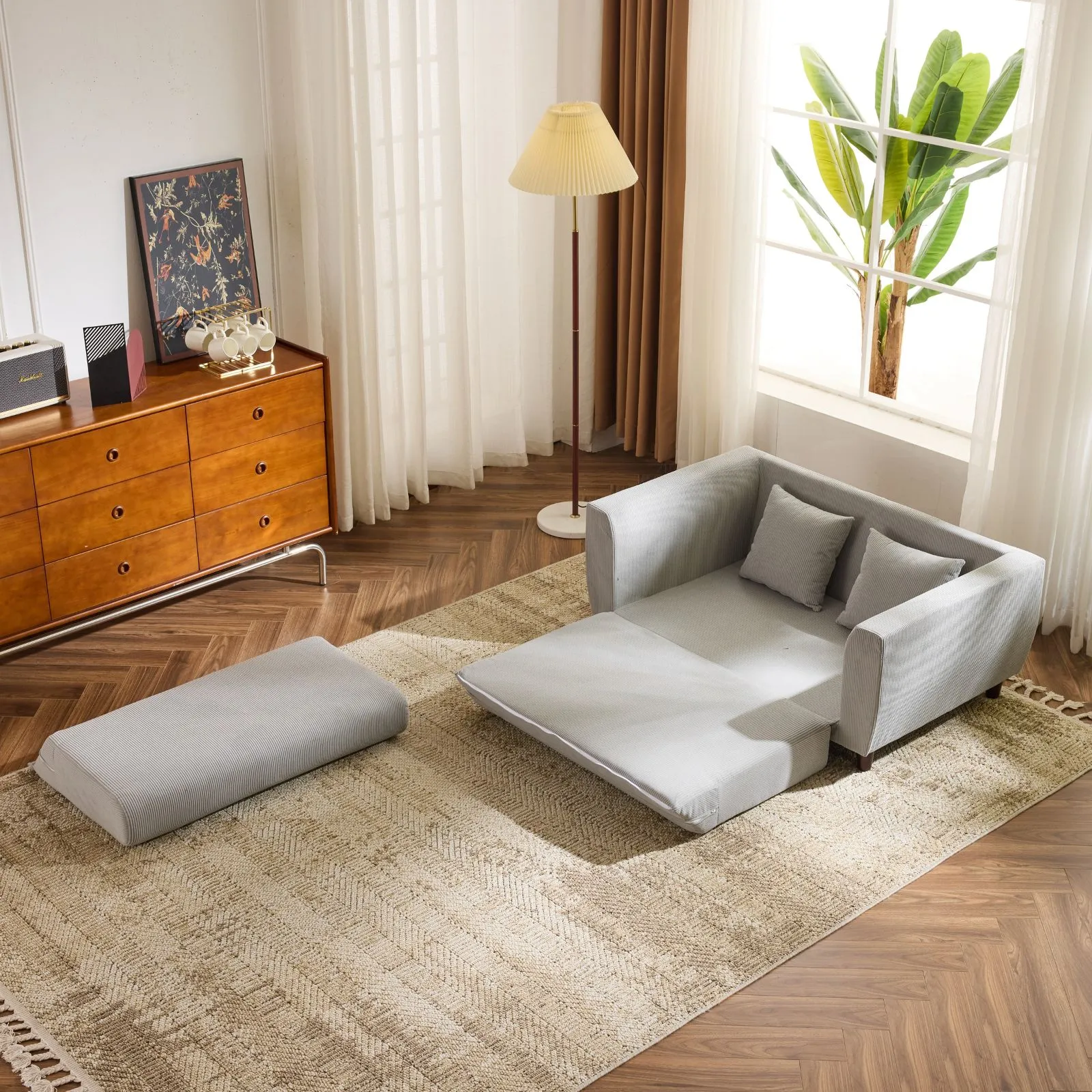 ソファーベッド 2人掛け ソファベッド 3way 折りたたみ コンパクト 抱き枕付き 圧力分散 線模様 取付可能な脚 【グレー】