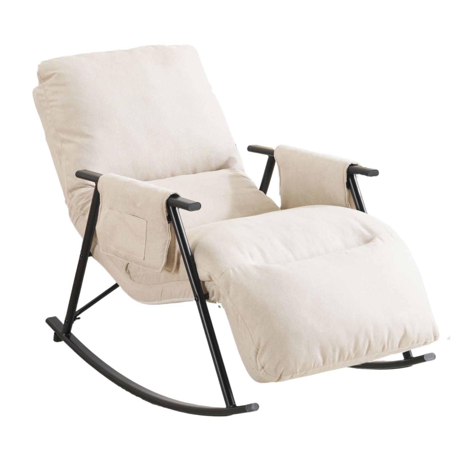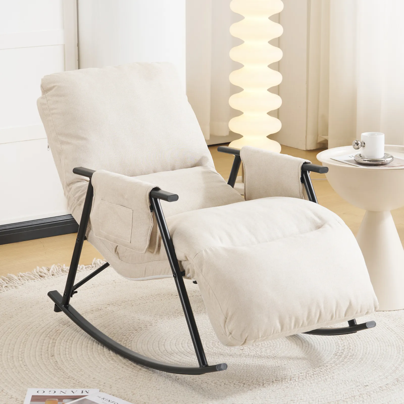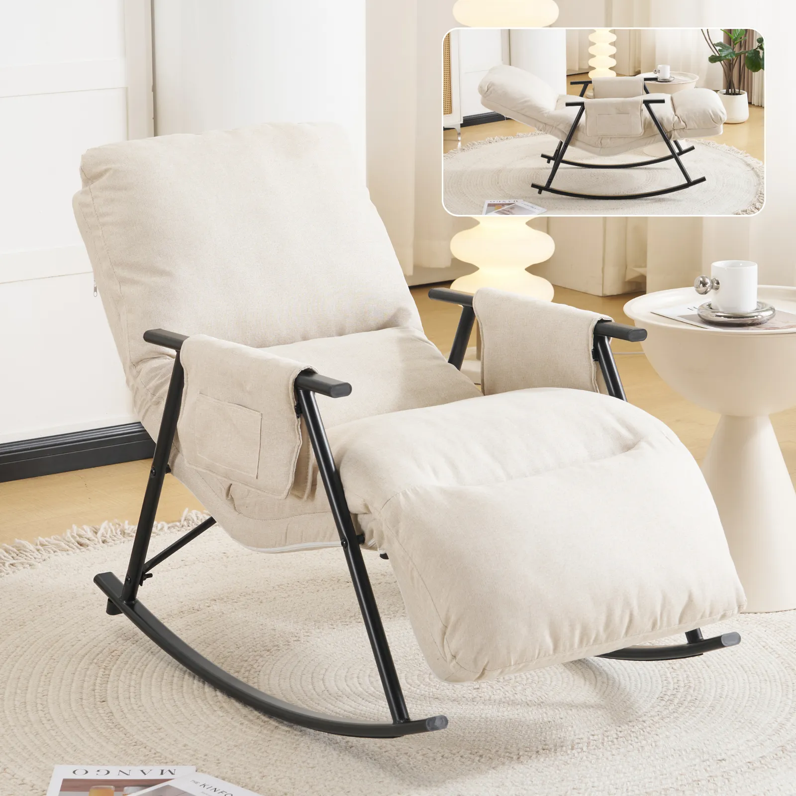 ロッキングチェア リラックスチェア 背もたれ多段階調節可能 足部分多段階調節可能 頑丈 耐久 座り心地よい 揺れる椅子 読書椅子 床を傷つけない 組み立て簡単 屋内用 リビングルーム用 ベランダ用 リラックス 一人暮らし ふわふわ 通気性 【ホワイト】