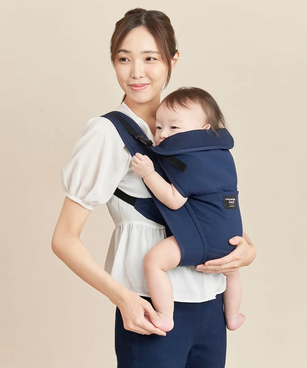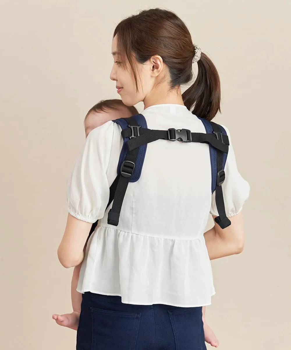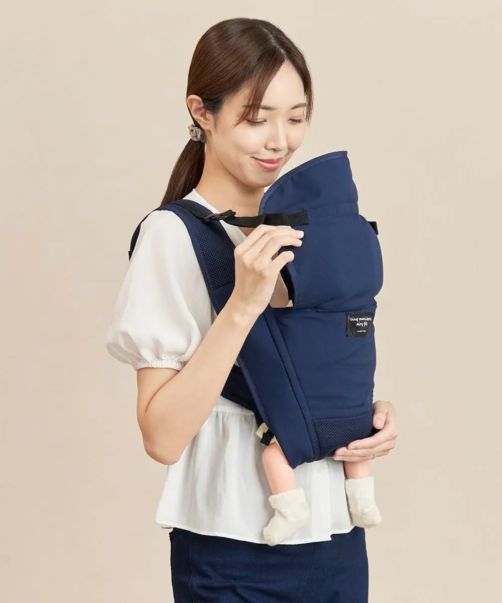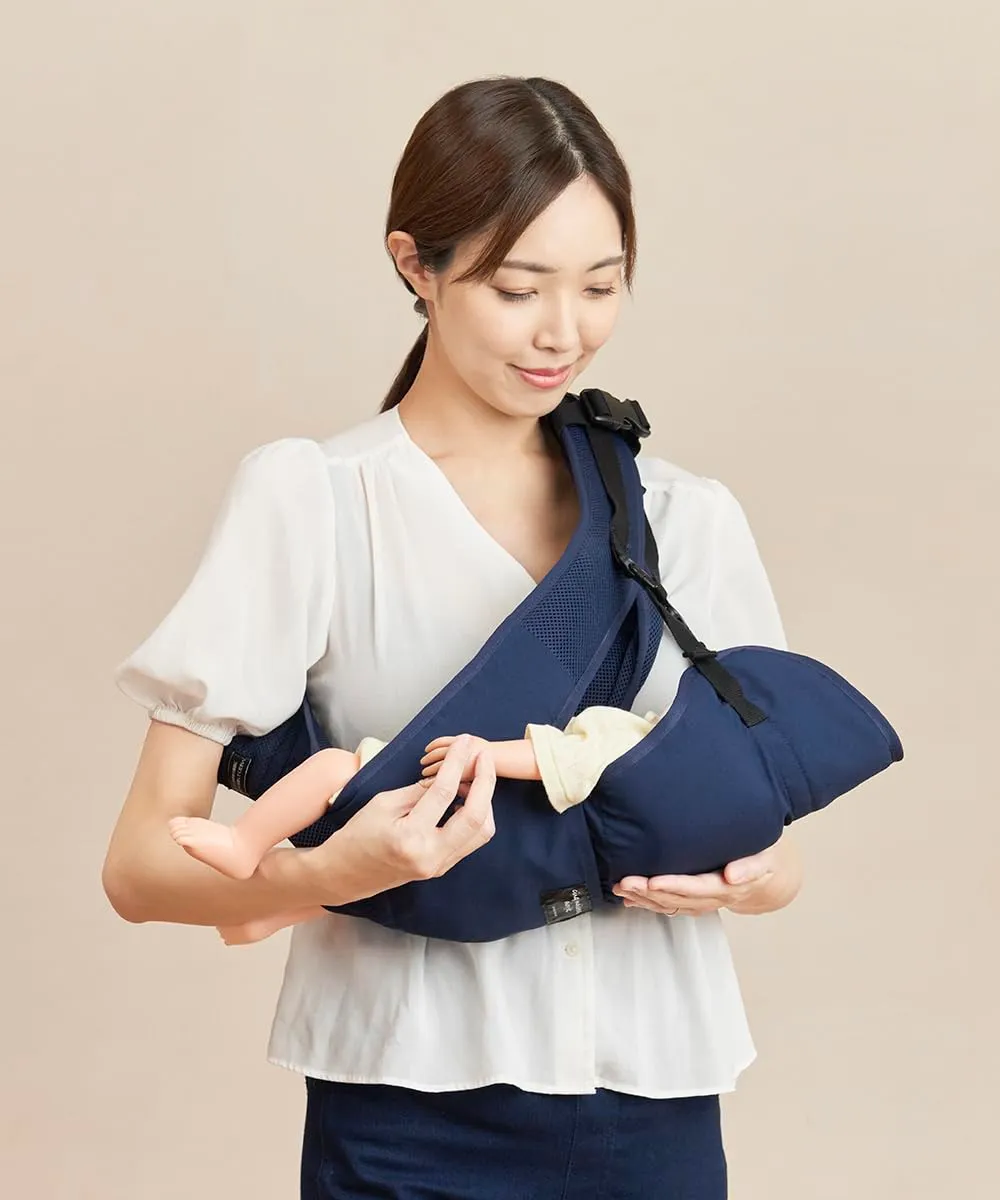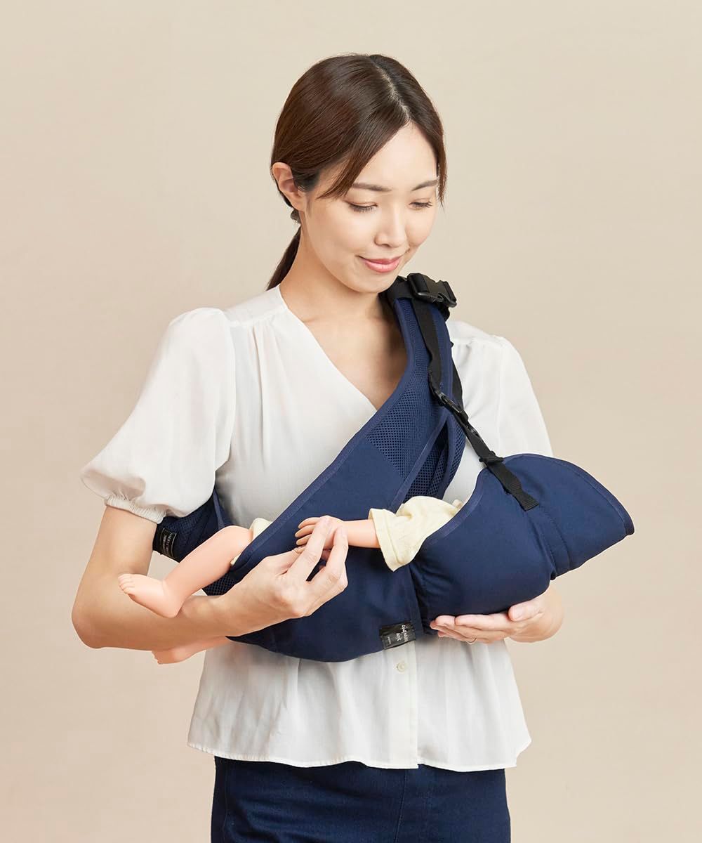 新生児から3歳まで、成長に合わせて5通りに使えるサンクマニエルのオールメッシュタイプ。 手で抱かれているように抱ける寝かせ抱きと首がすわる前の対面抱きの時は、付属のピローをマントの中にセットすることで赤ちゃんの頭をしっかり&優しくホールドします。ウエストベルトが無いタイプなので腰への負担が少なく、ショルダーベルトと本体がしっかり体にフィットするので赤ちゃんが密着します。前向き抱きの時は足の開きすぎを防ぎ、おんぶや抱っこの時は本体がしっかり包みこんで自然なM字開脚になる構造なので、赤ちゃんも楽に座っていられます。 本体は通気性のいいオールメッシュ仕様。お洗濯しても乾きやすいので汚れても気軽に洗え、清潔を保てます。