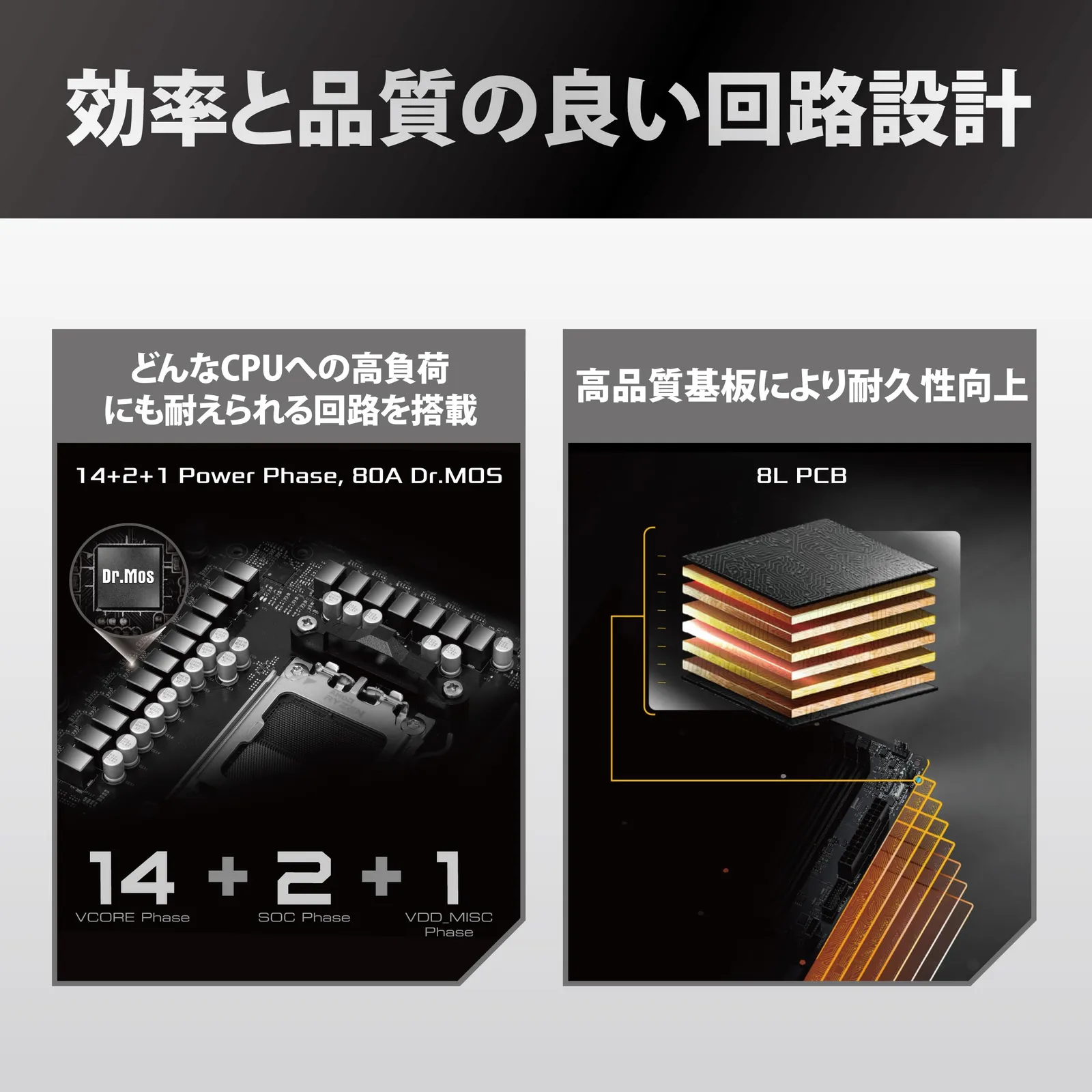【電源Phase】14+2+1 Phase Power Design, 80A Dr.MOS for VCore+SOC+MISC