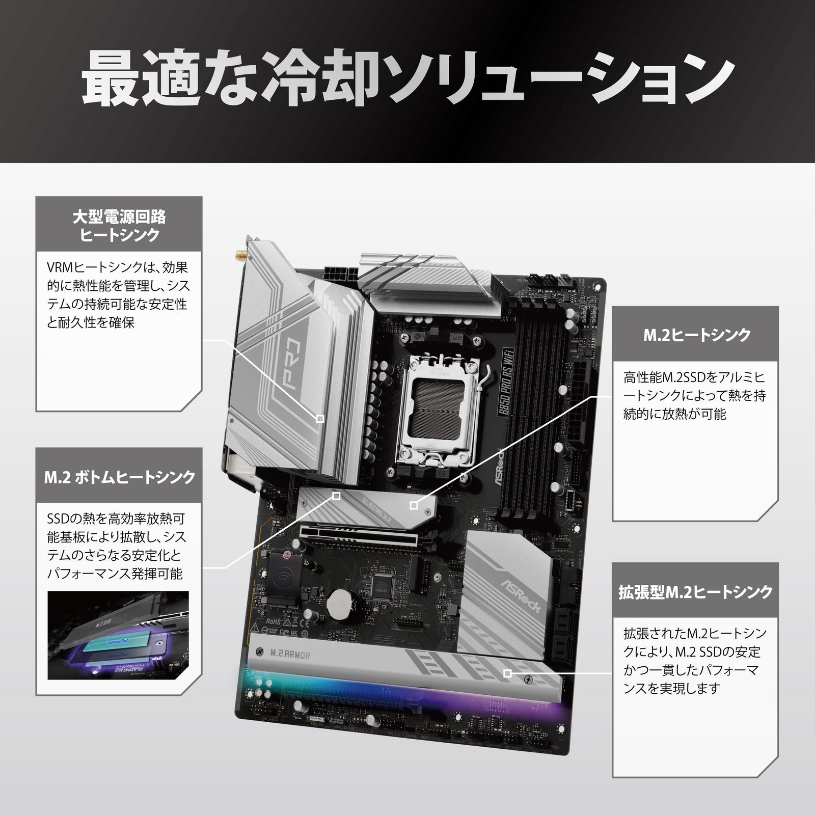 新品 ASRock マザーボード B850 Pro RS WiFi AMD Ryzen 9000 / 8000 / 7000 シリーズ CPU (Soket AM5) 対応 DDR5 ATX マザーボード 【国内正規代理店品】
