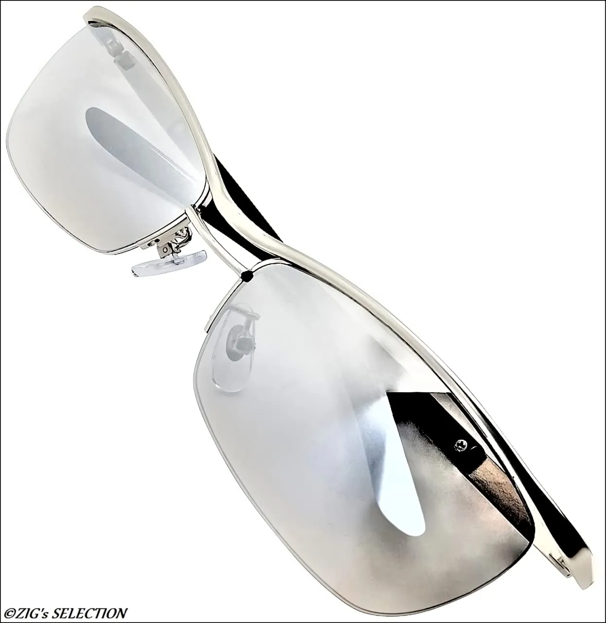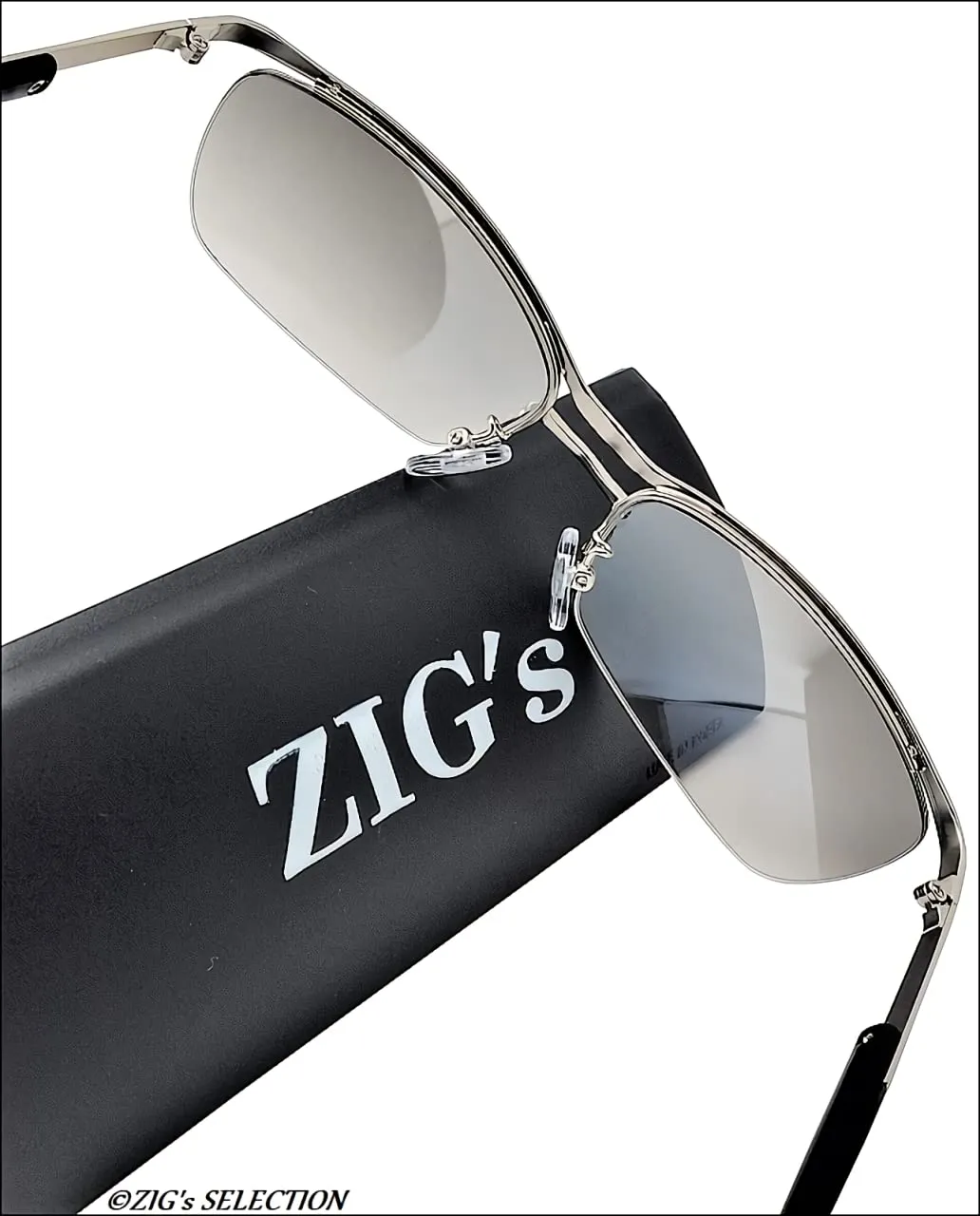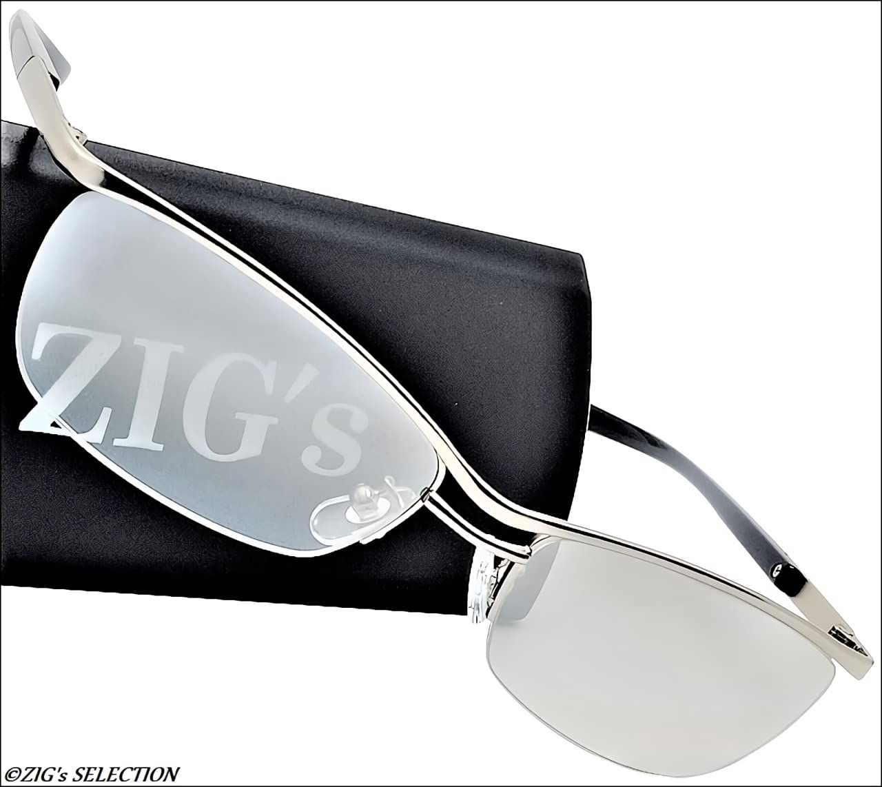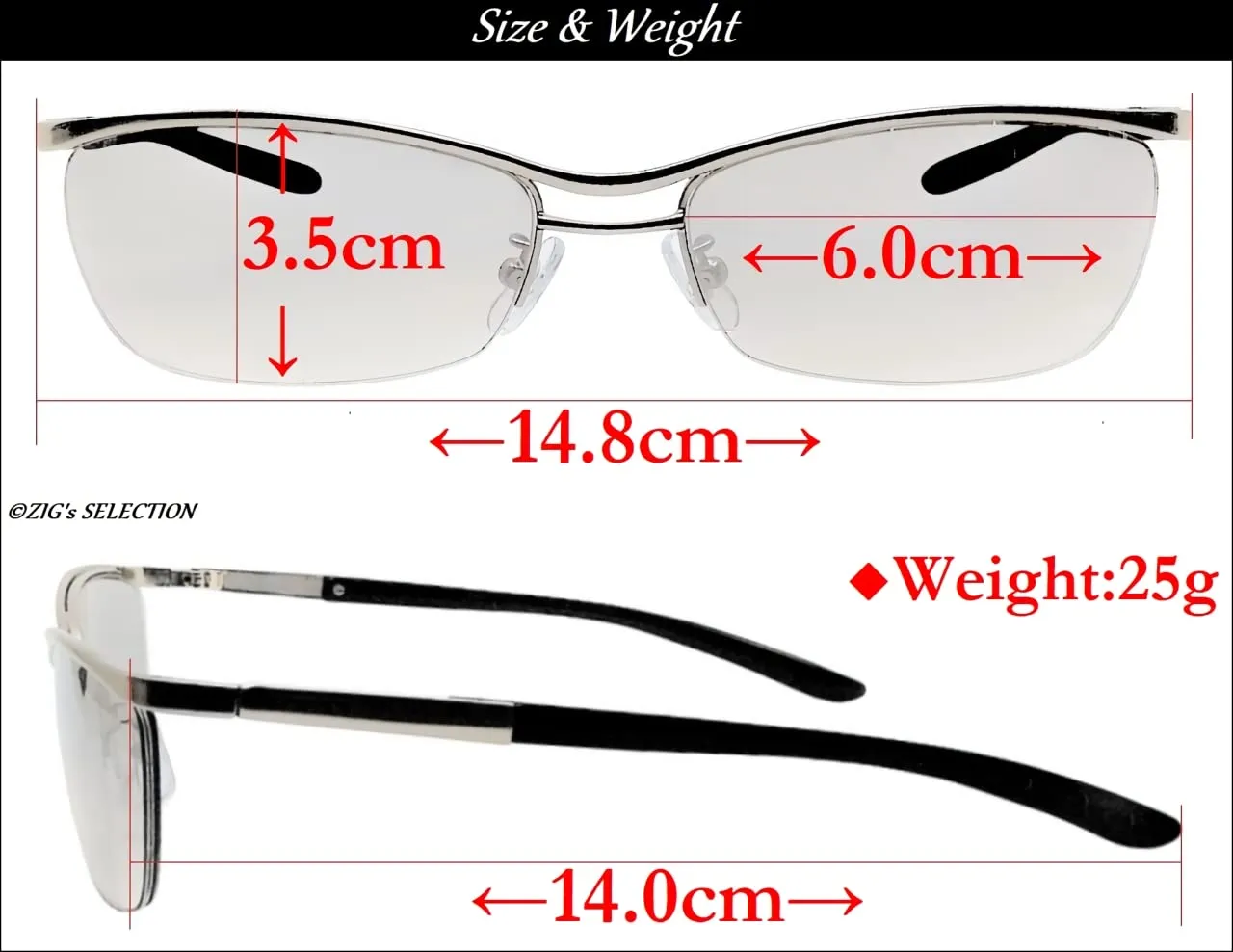 [ZIGs] 昼夜兼用可 24時間キメル 目を守る マットシルバーframe 薄い色 ライトブラウン ハーフミラー サングラス メンズ カジュアル 運転 アウトドア (sa10cl)