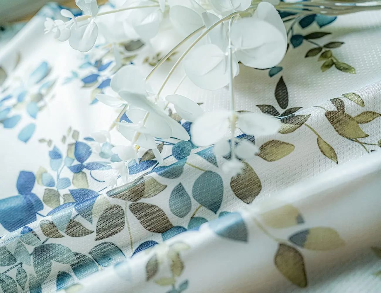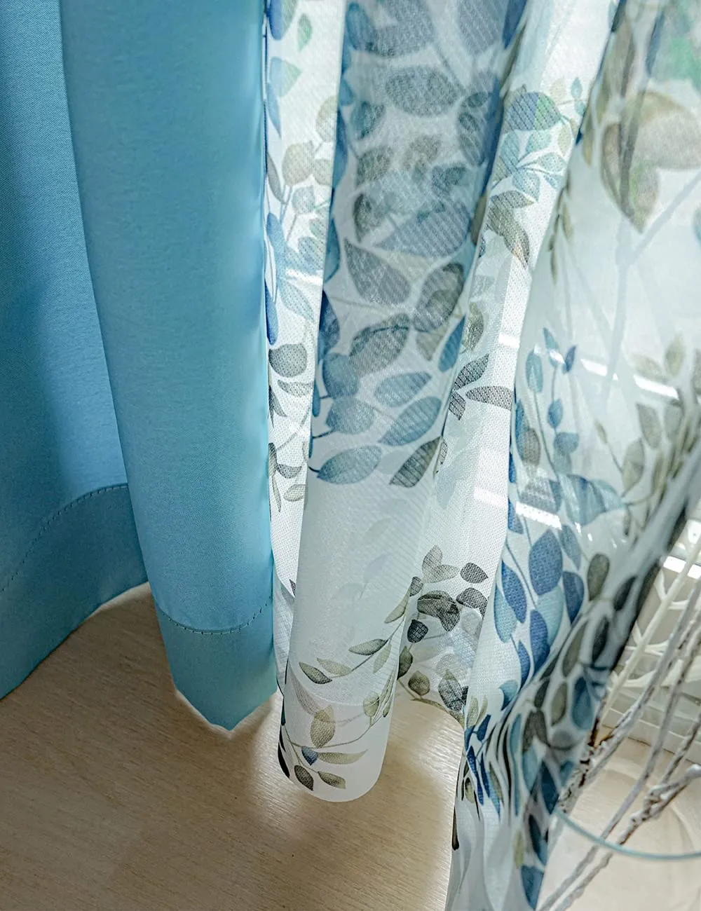 遮光カーテン 2枚 + 花柄 デザイン レース 2枚 + カーテンフック取り付け済み + カーテンタッセル ブルー 幅100×丈105(103)cm 小窓用 4枚セット 4枚組 カーテンセット
