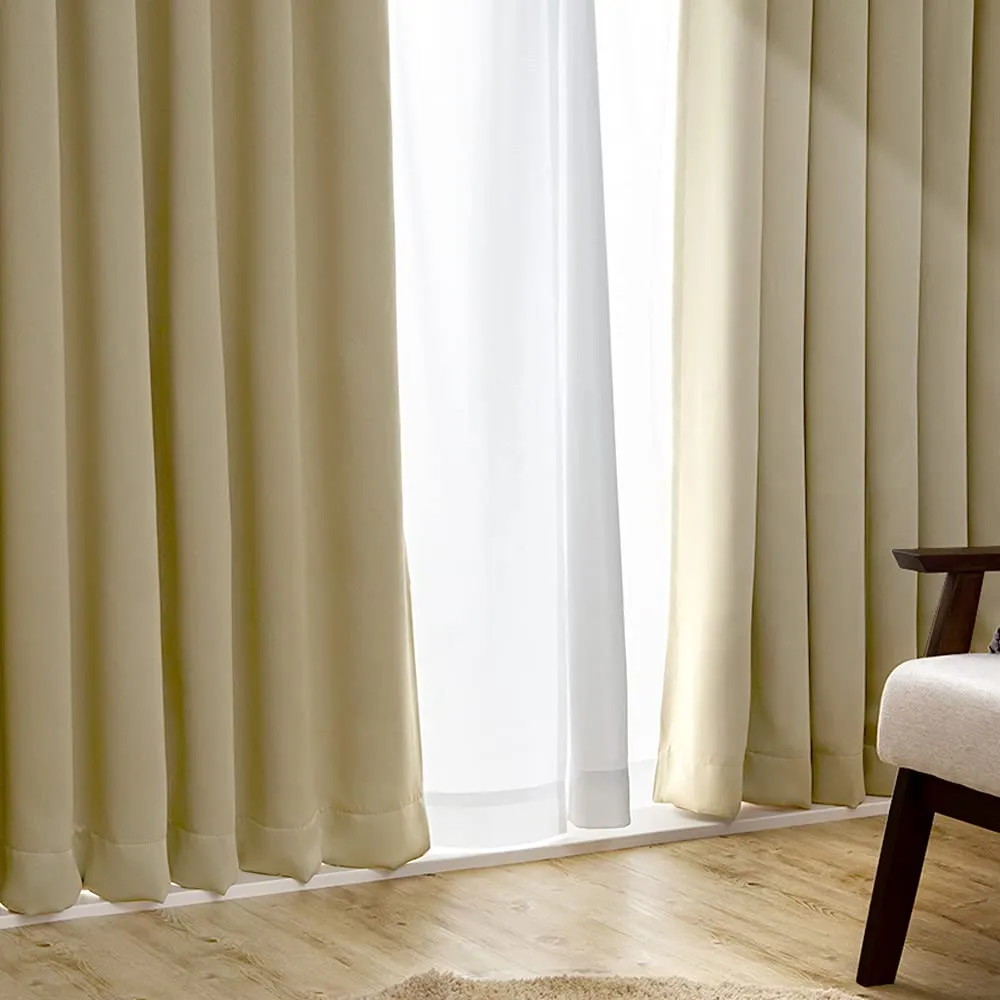 【在庫セール】PLAZA) 遮光度99.99%カーテン 幅100×丈210cm 1級遮光 タッセル付き アイリスプラザ(IRIS しっかり厚手 節電&省エネに 断熱/防寒 洗濯機OK 2枚組 ベージュ