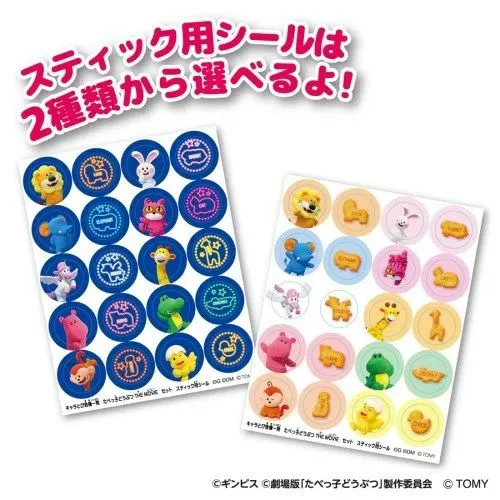 【セット内容】 タル×1、らいおんくん人形×1、ぞうくん人形×1、うさぎちゃん人形×1、スティック(イエロー・ブルー各5本)×10、スティック用シール×2、ダイカットシール×1