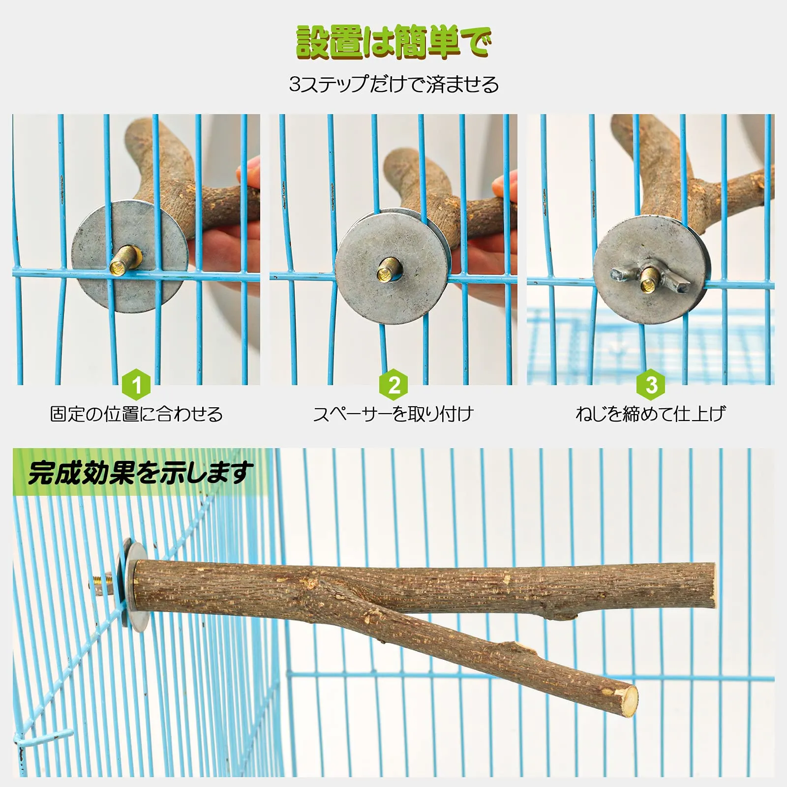 ?取り付け簡単:各ブドウのイカは金属の蝶ナットおよび作り付けのボルトが装備されている。設置に追加の機器は必要なく、しっかりと固定できます。簡単にケージに設置できます。平らなパーチなので小鳥の寝床としてもご利用いただけます。