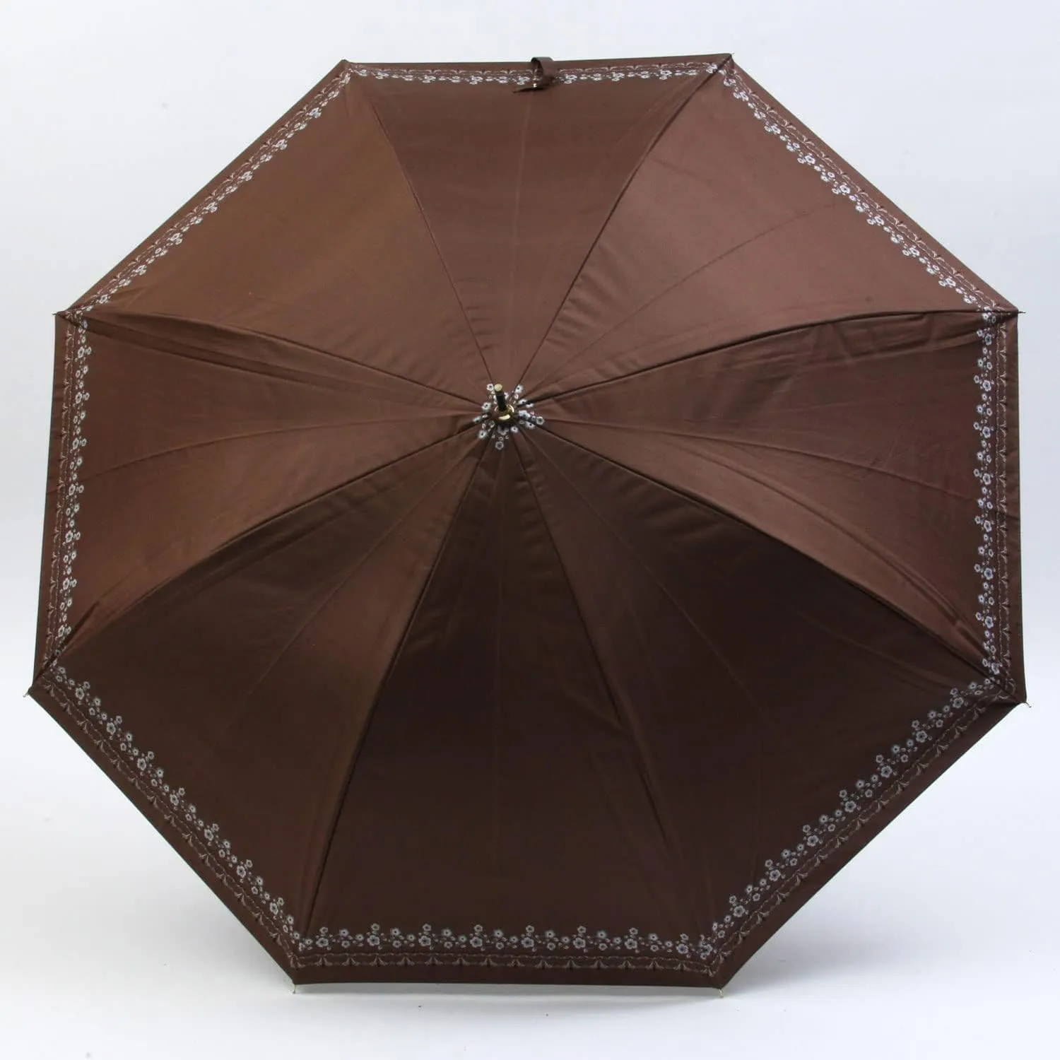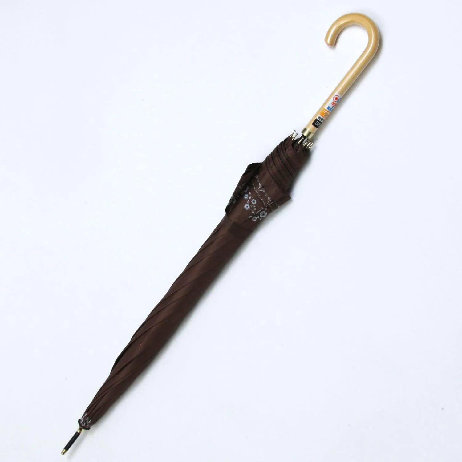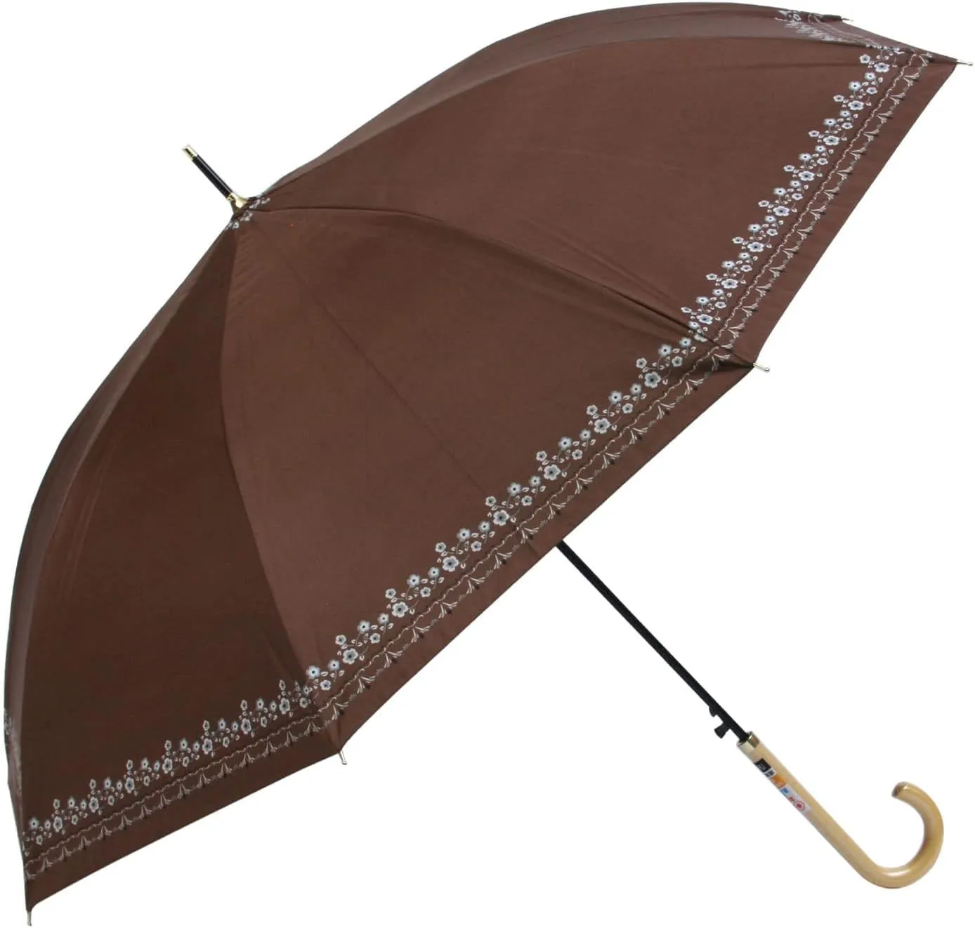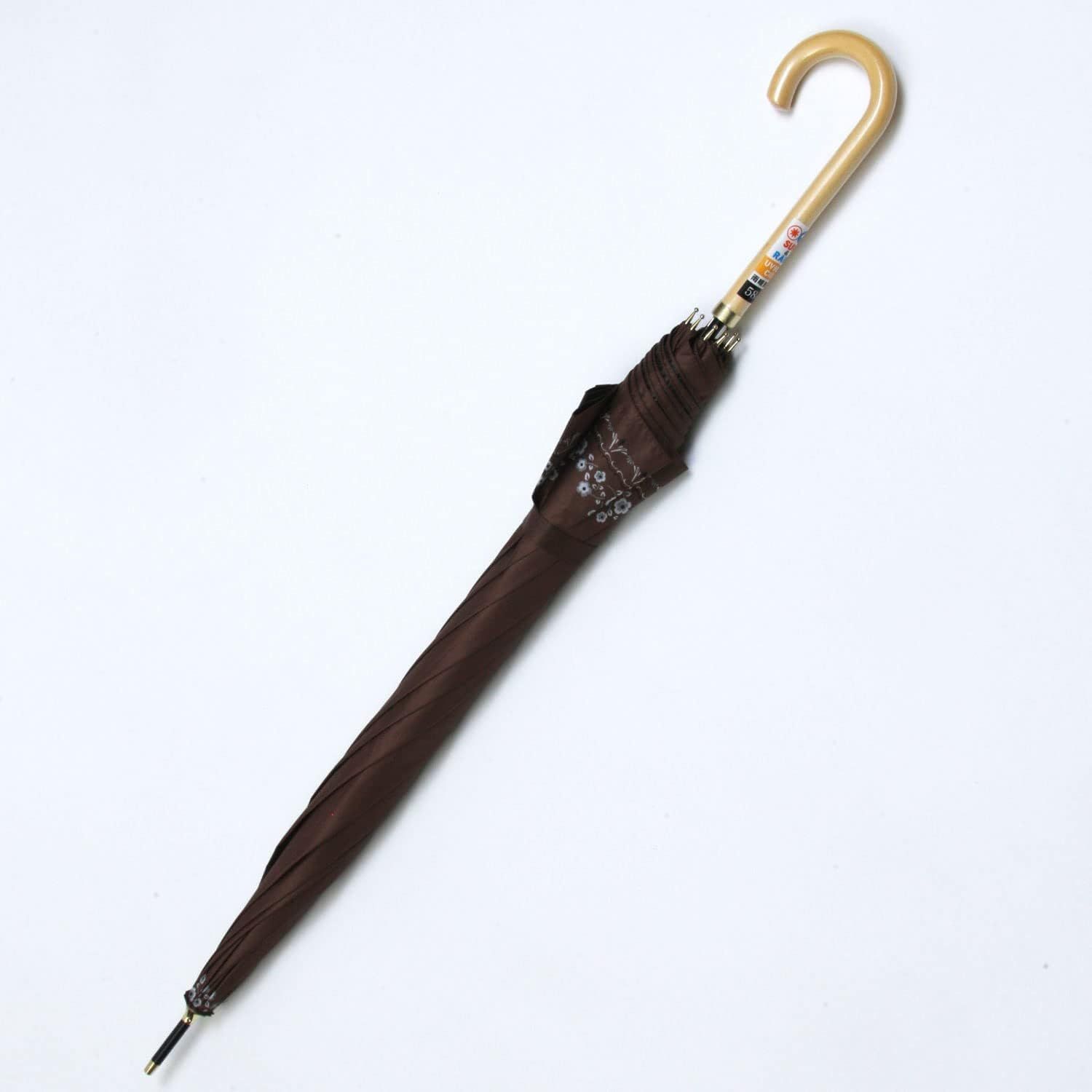 長傘 レディース 晴雨兼用 内側 日傘コーティング UV&遮光 99% 58cm ベーシックスタンダード ワンタッチ ジャンプ傘 丈夫 耐風 グラスファイバー骨 おしゃれ 木ハンドル かわいい ガーデン ブラウン