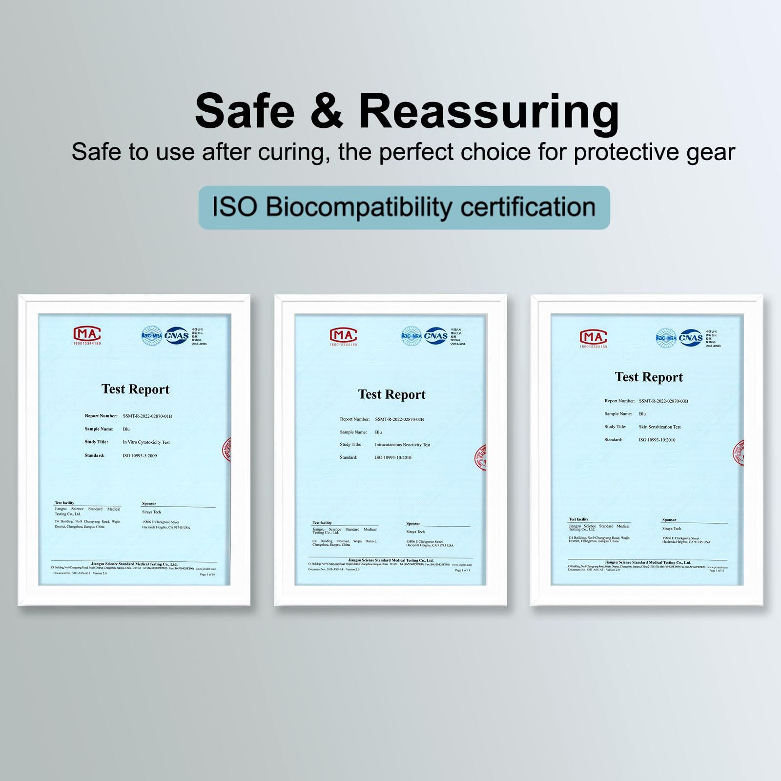 医療機器認定:Blu 3Dプリンター樹脂は、医療機器アプリケーションにおける生体適合性に関するISO 10993-5 / 10993-10規格に合格しています。