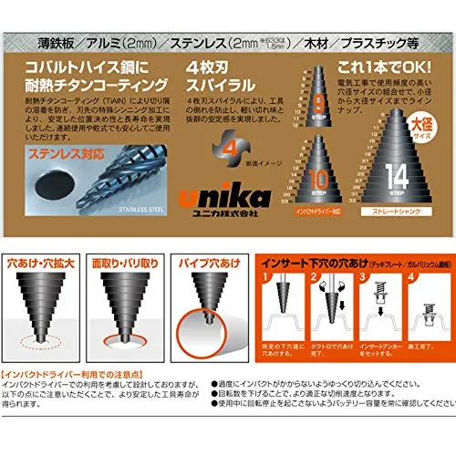 新品 ユニカ ステップドリル クワトロ 段数10 6.35六角軸 SPQ-422 4枚刃スパイラル 耐熱チタンコーティング UNIKA 三富D