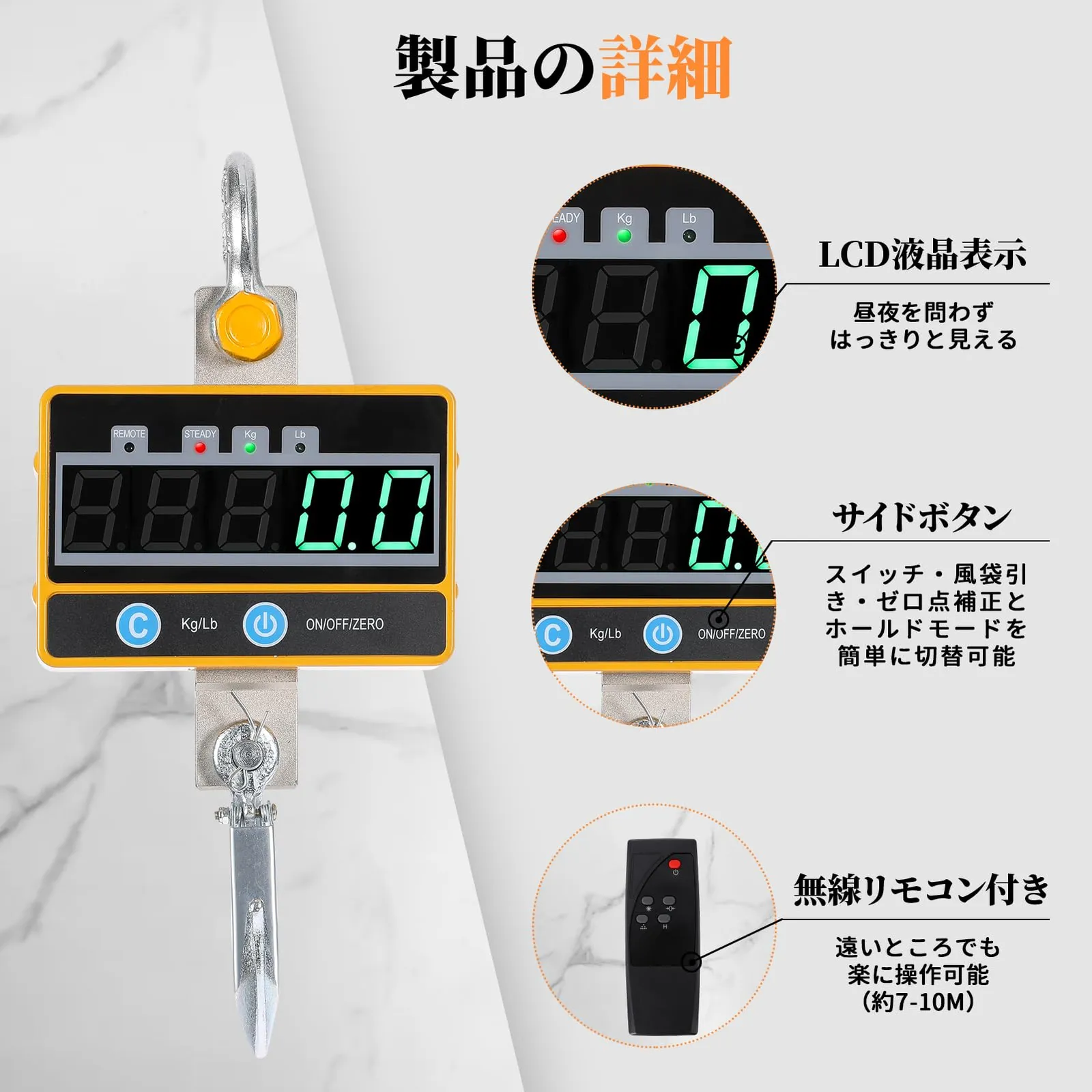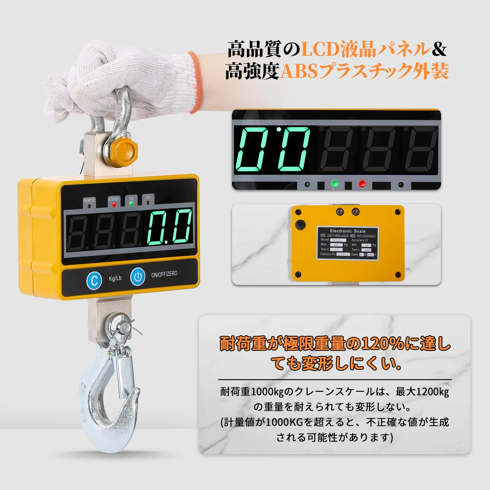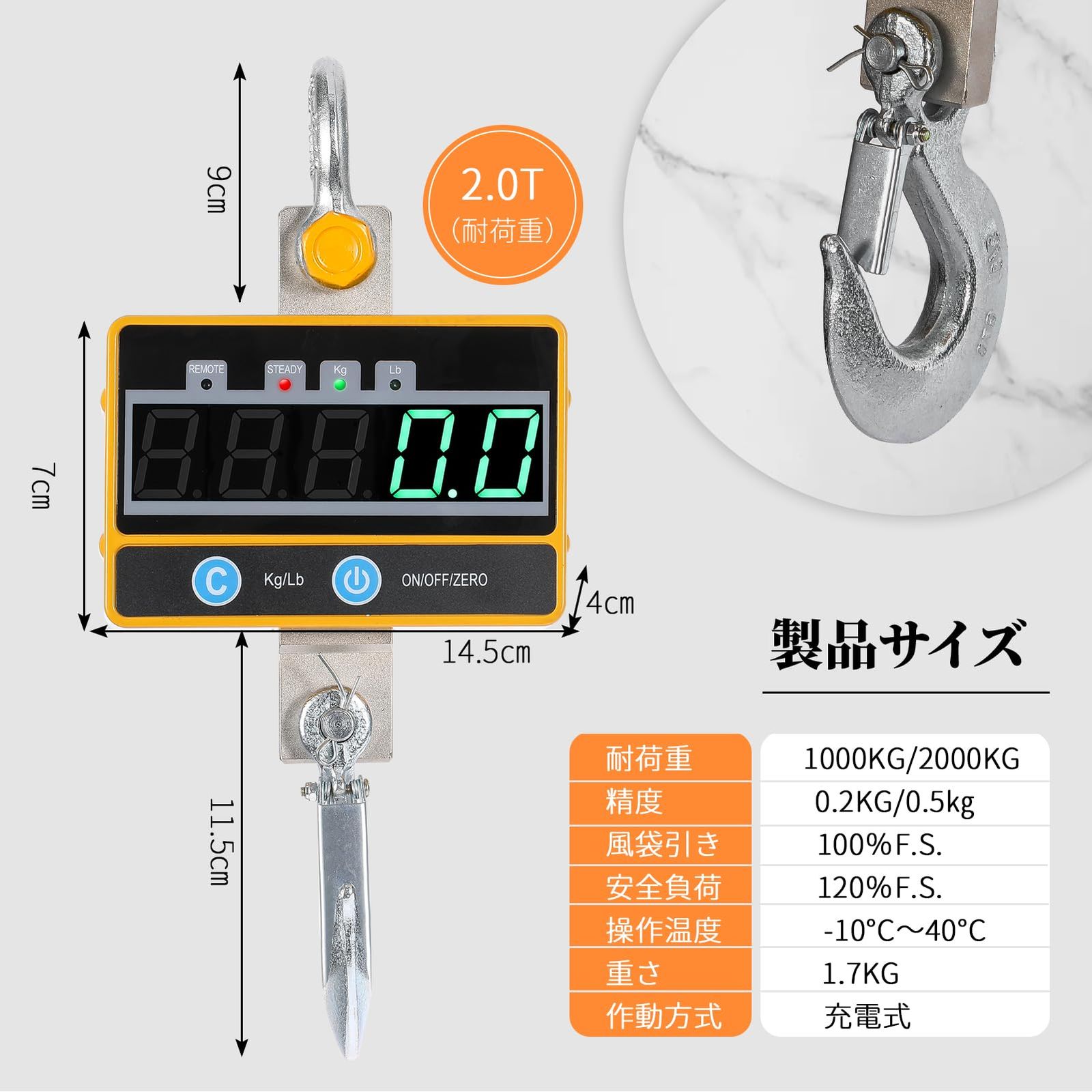 新品 CGOLDENWALL クレーンスケール 吊りはかり 2000kg 充電式 デジタルクレーンスケール 2t 計量スケールクレーン 高精度つりはかり リモコン付き 吊り下げデジタルスケール 日本語説明書付き 工場 漁業 建築工事 吊り秤