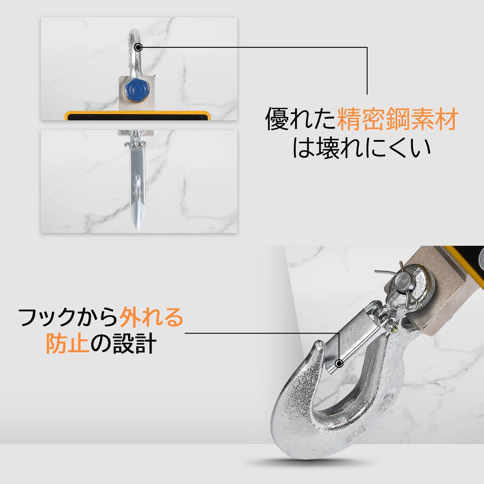 【軽量ですが変形しにくい】わずか1.7㎏の重量でコンパクトを達する同時、高強度ABS工程のプラスチック外装加えて精密鋼素材で、耐荷重が極限重量の120%に達しても変形しにくい。本クレーンスケールは魚釣り、朝市などな場所だけでなく、貨物ターミナル、物流センターで使用しても長時間の安定性をできます。