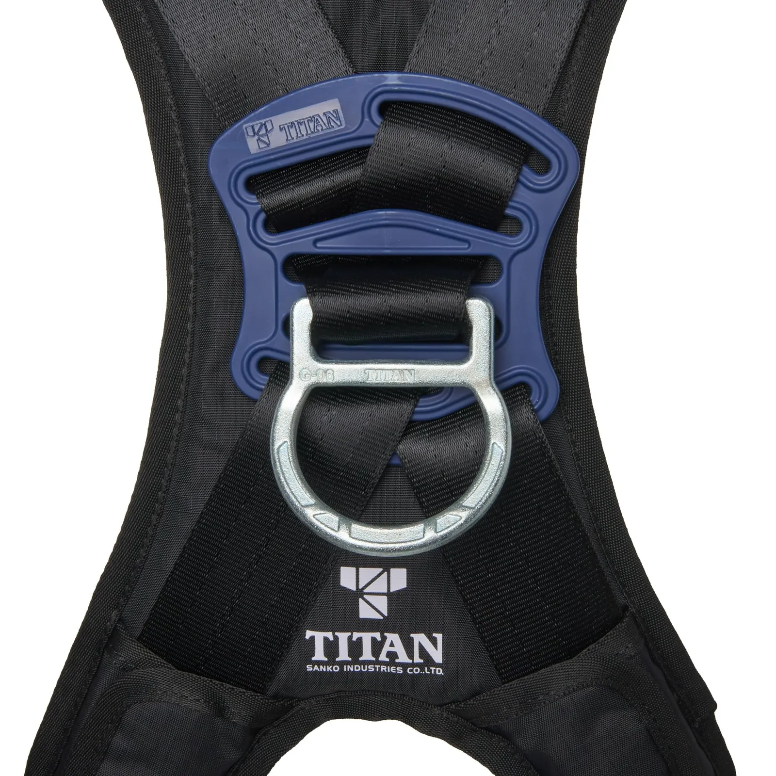 新品 タイタン【TITAN】パンゲアハーネスキャニオン PACN-10A-BL-L (腿V字型/新規格 墜落制止用器具/軽量ハイグレード/ワンタッチバックル/肩・背中クッション標準装備/胸ベルト換装でフロントD環仕様が可能/スタッフバック付き/ Lサイズ/動き