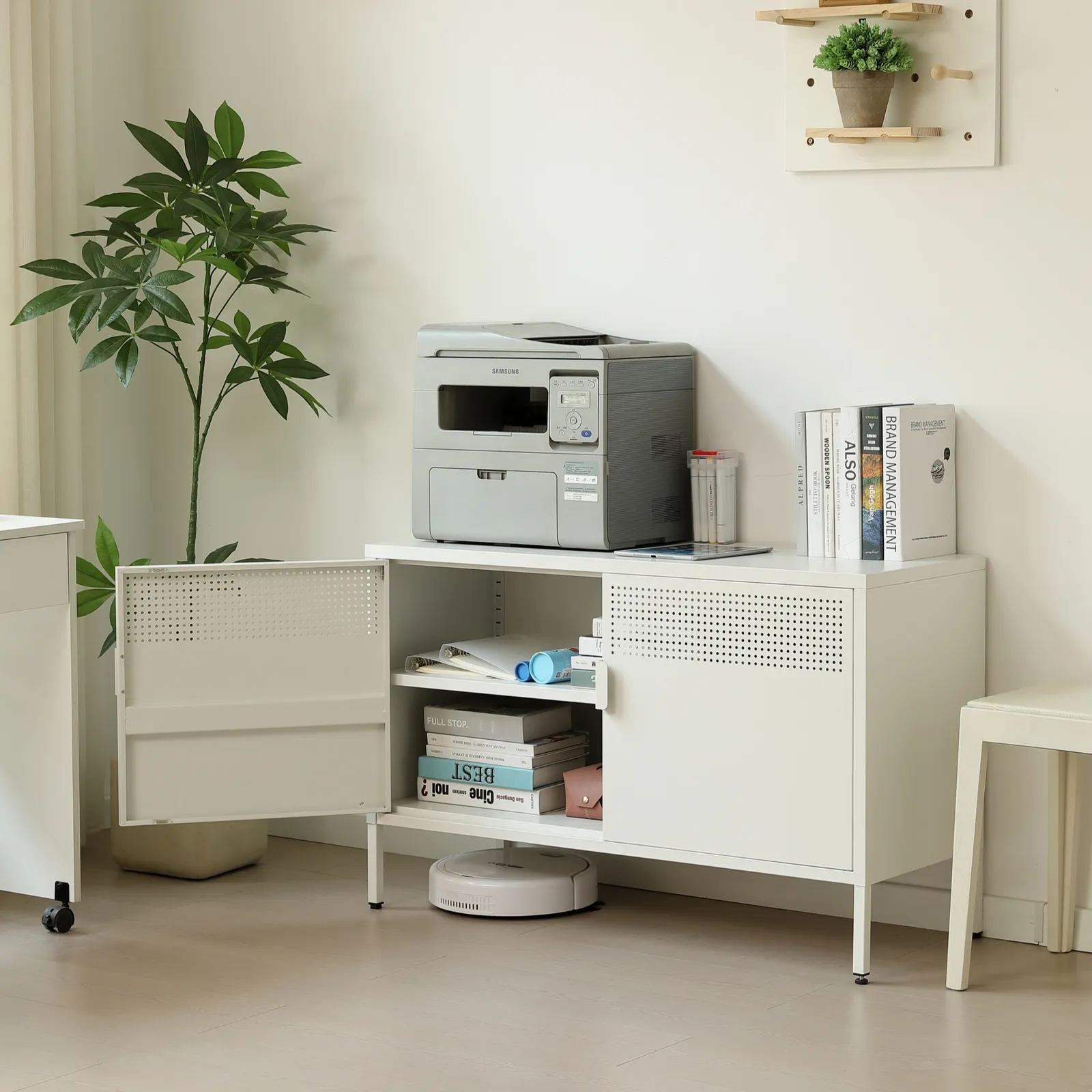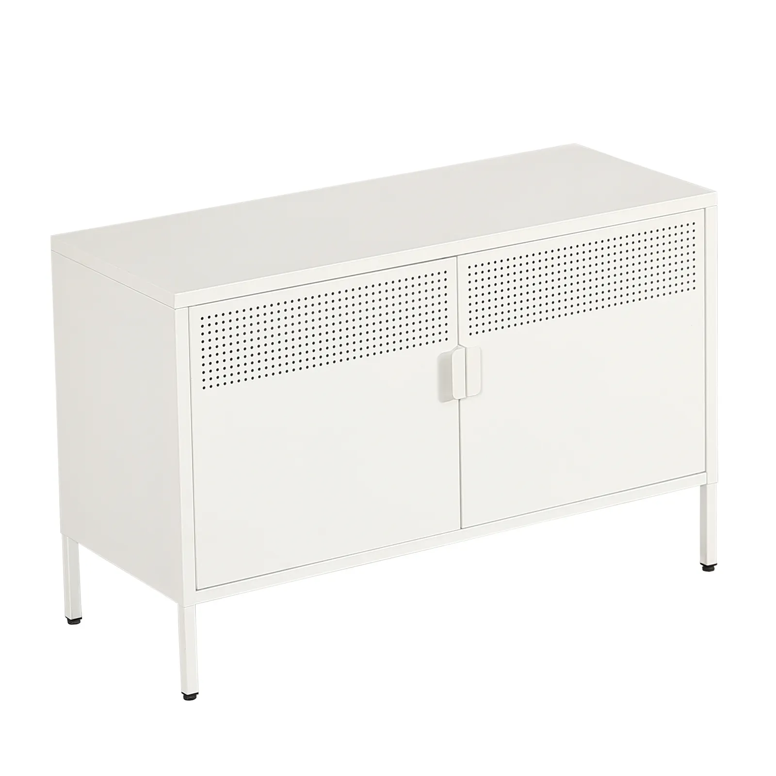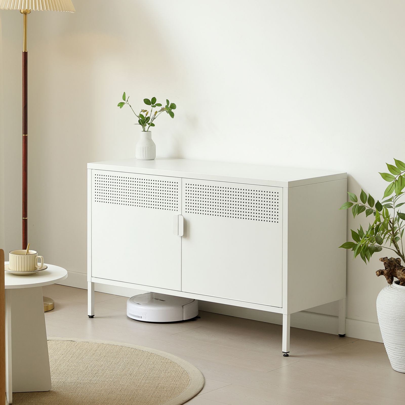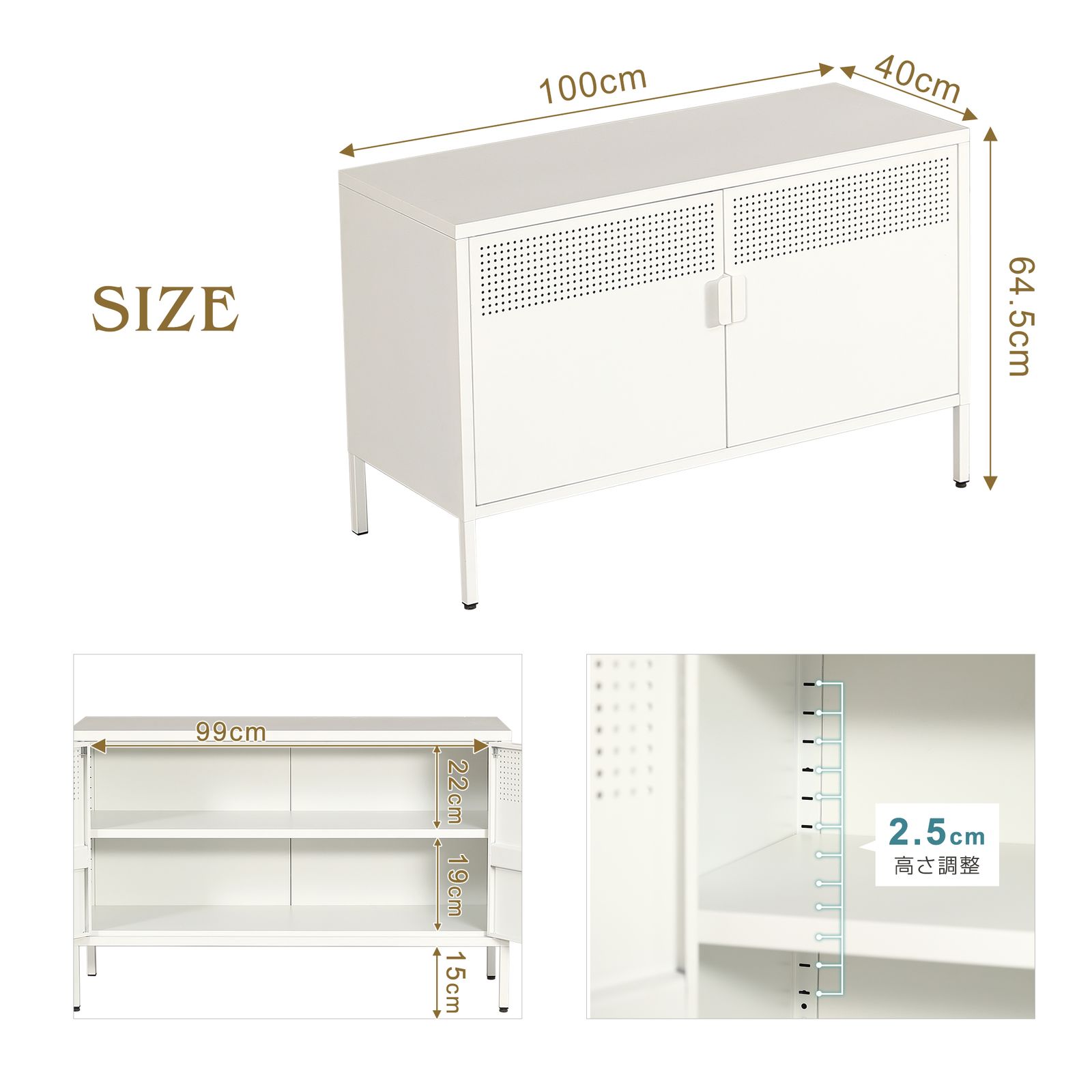 キャビネット スチール メタル 金属製 扉付き テレビ台 サイドボード 収納棚 おしゃれ リビング モダン 棚 スチールチェスト 書類 韓国インテリア 扉 取っ手 金属製キャビネット 【ホワイト】