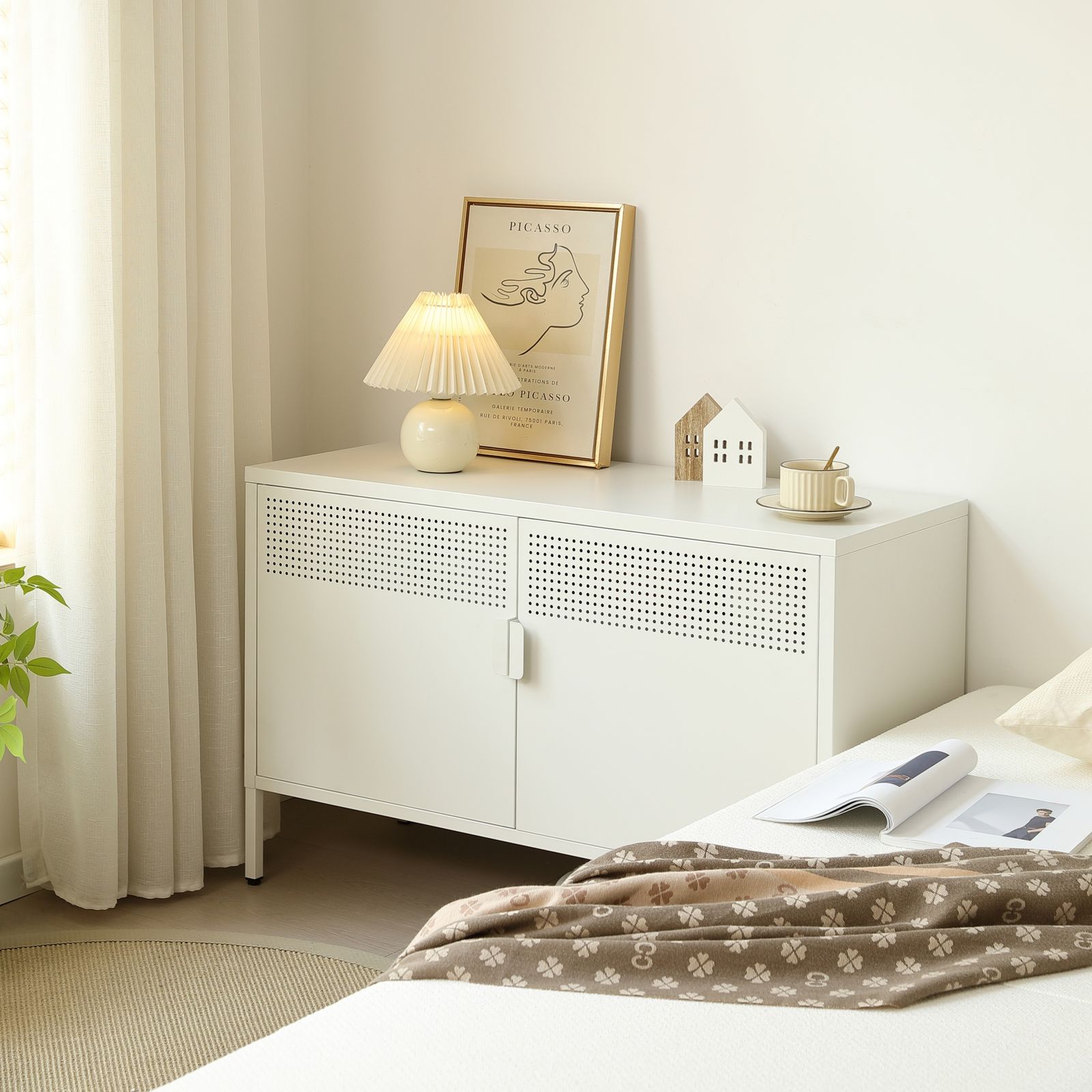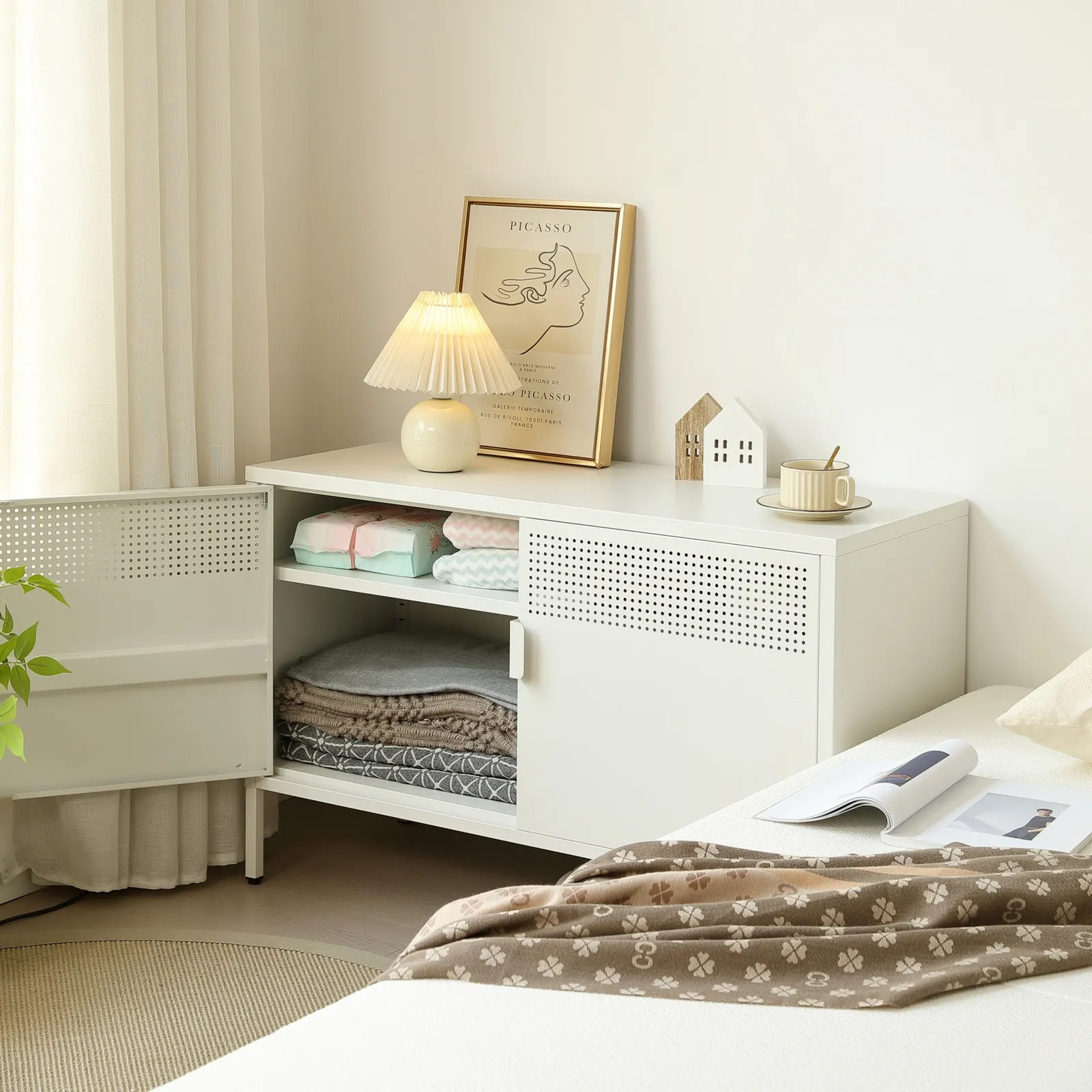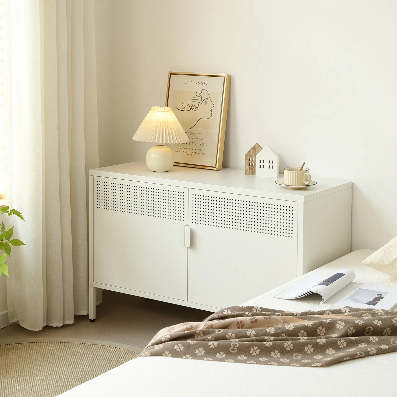 キャビネット スチール メタル 金属製 扉付き テレビ台 サイドボード 収納棚 おしゃれ リビング モダン 棚 スチールチェスト 書類 韓国インテリア 扉 取っ手 金属製キャビネット 【ホワイト】