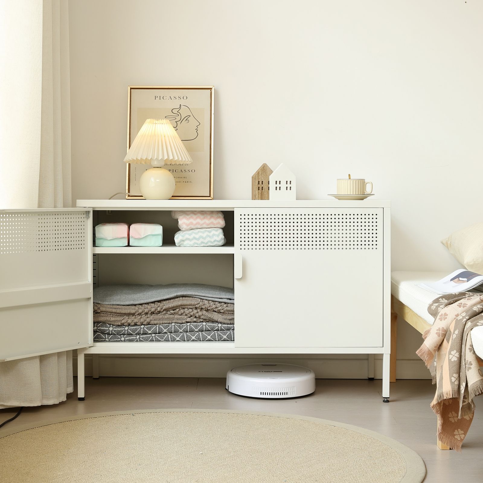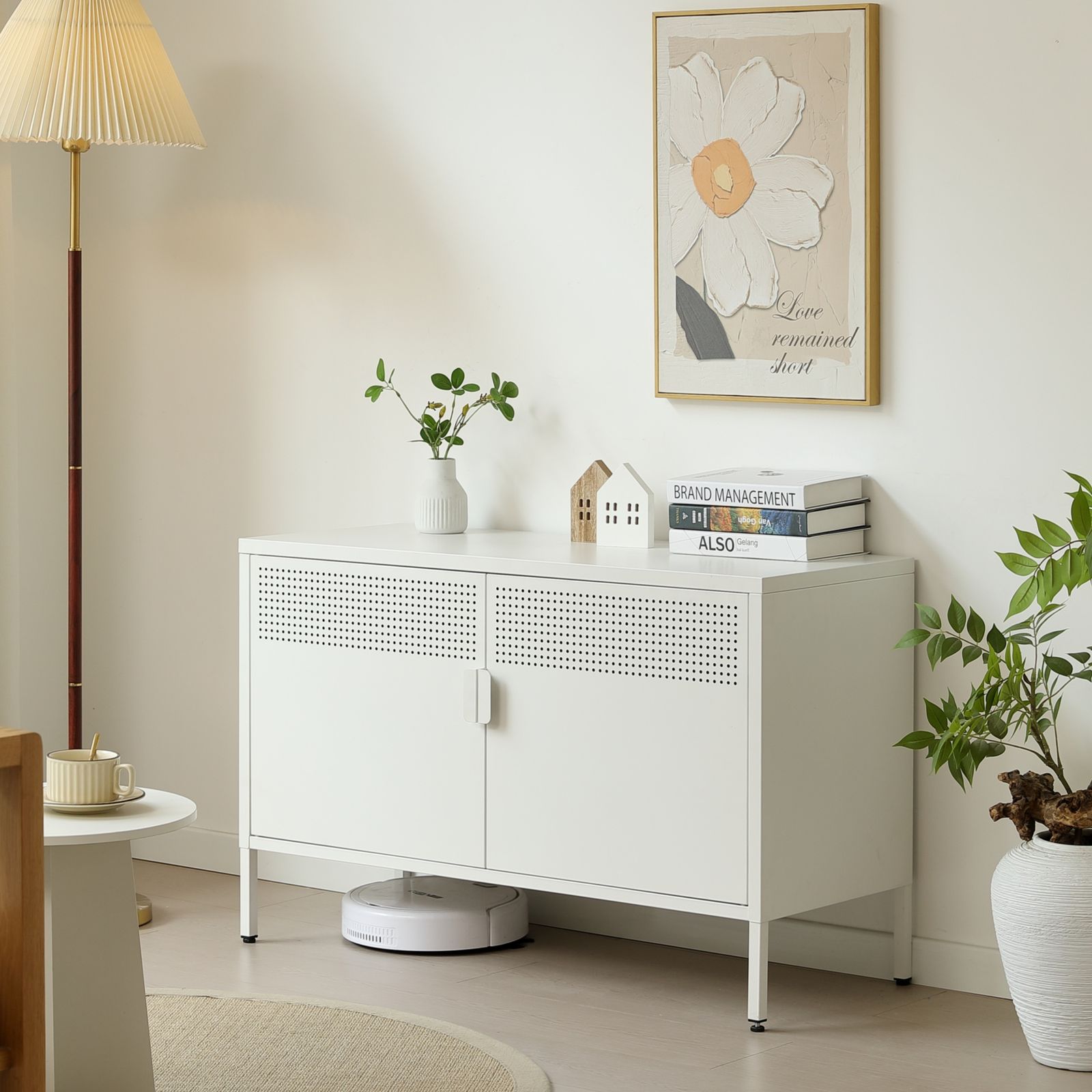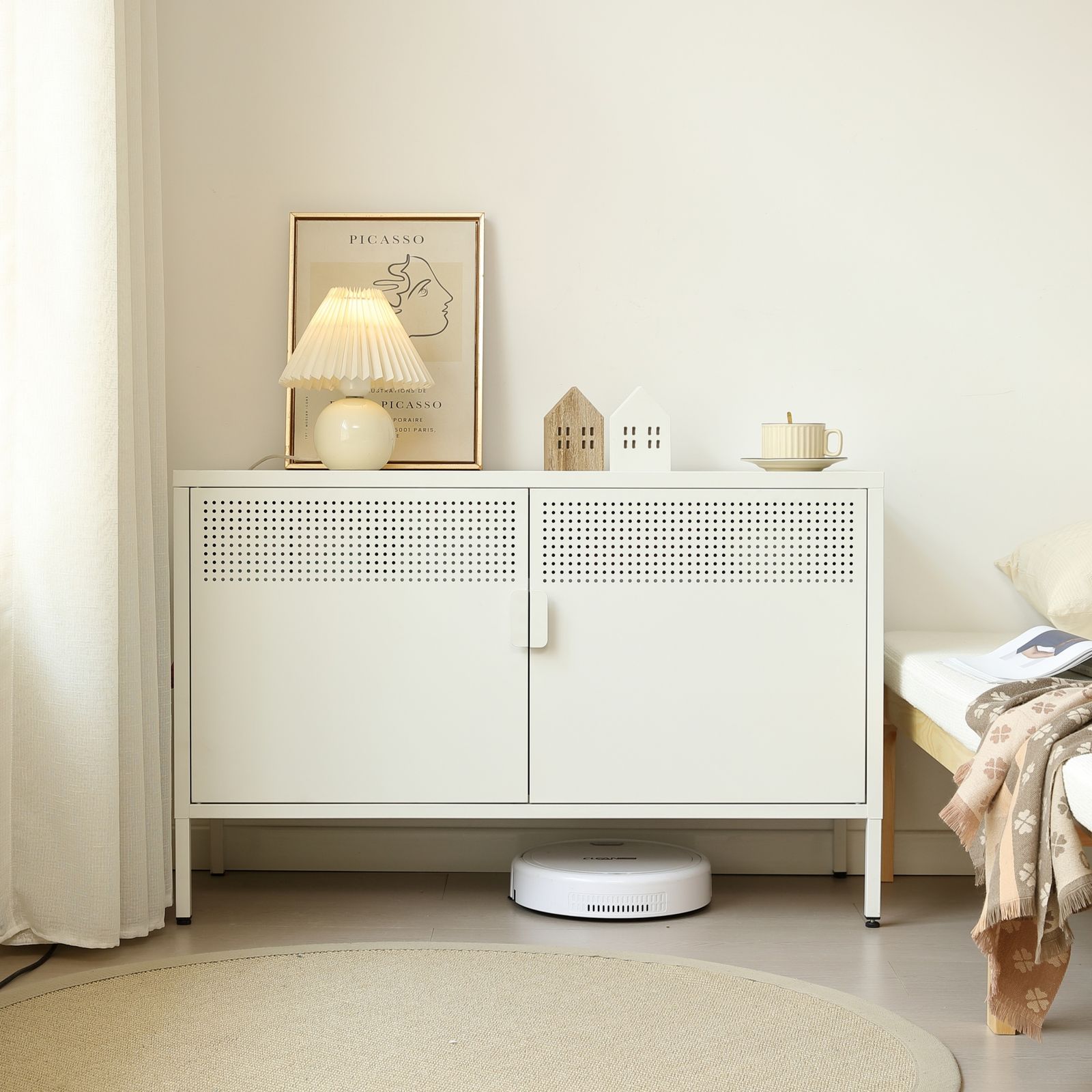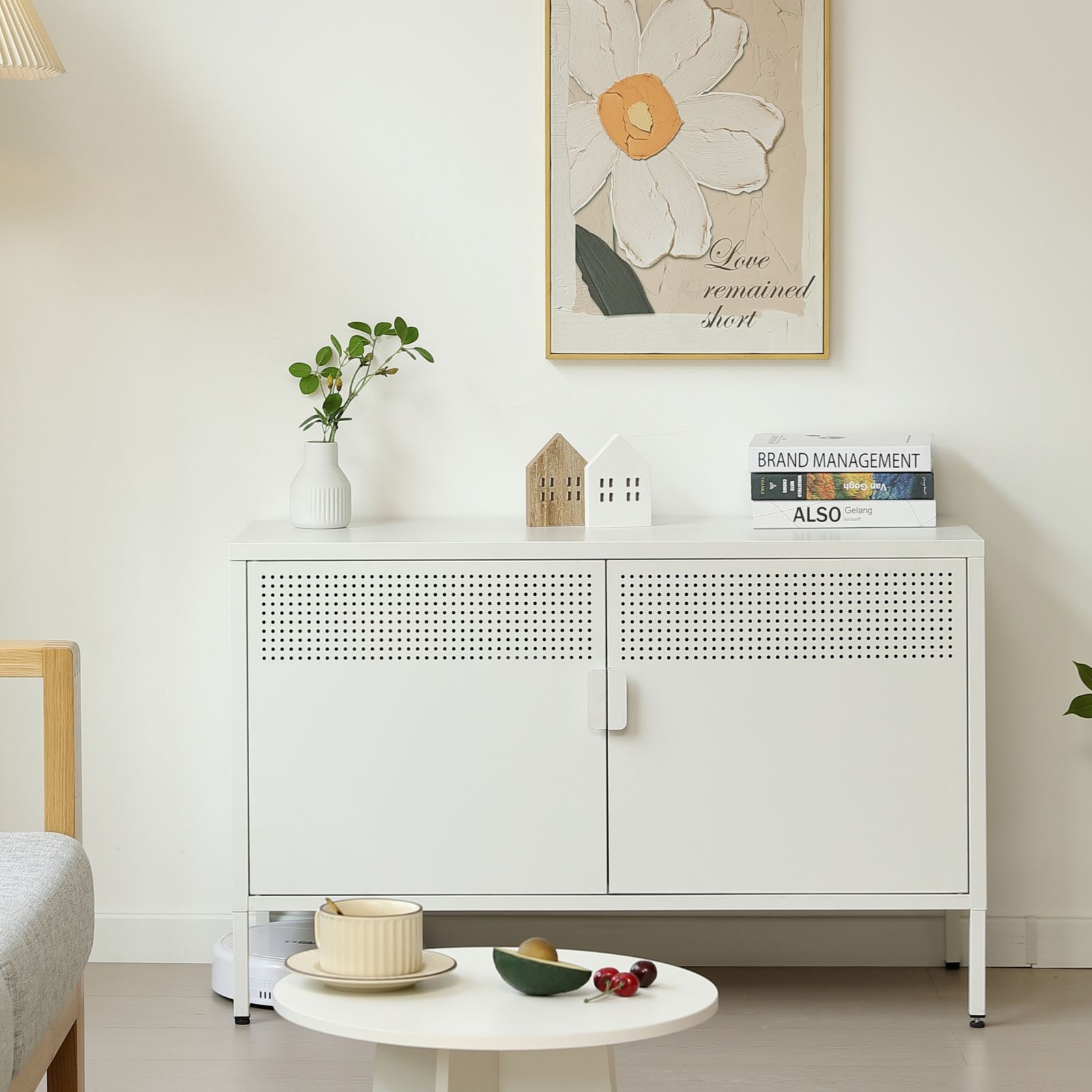 キャビネット スチール メタル 金属製 扉付き テレビ台 サイドボード 収納棚 おしゃれ リビング モダン 棚 スチールチェスト 書類 韓国インテリア 扉 取っ手 金属製キャビネット 【ホワイト】