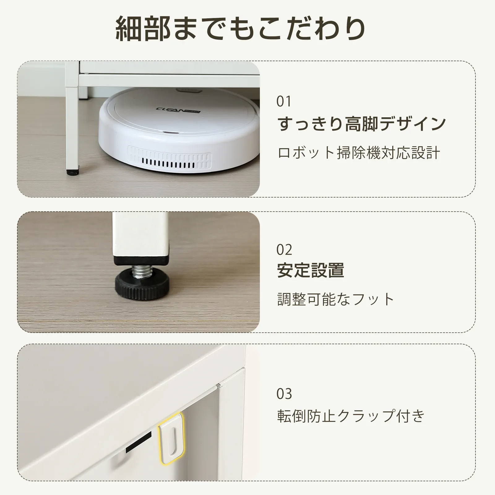 【すっきり高脚デザイン|床掃除もラクラ】15cmのすっきり高脚設計で、フロアマットの下までモップが入る掃除のしやすさ。ほこりがたまりにくく、お手入れが簡単です。