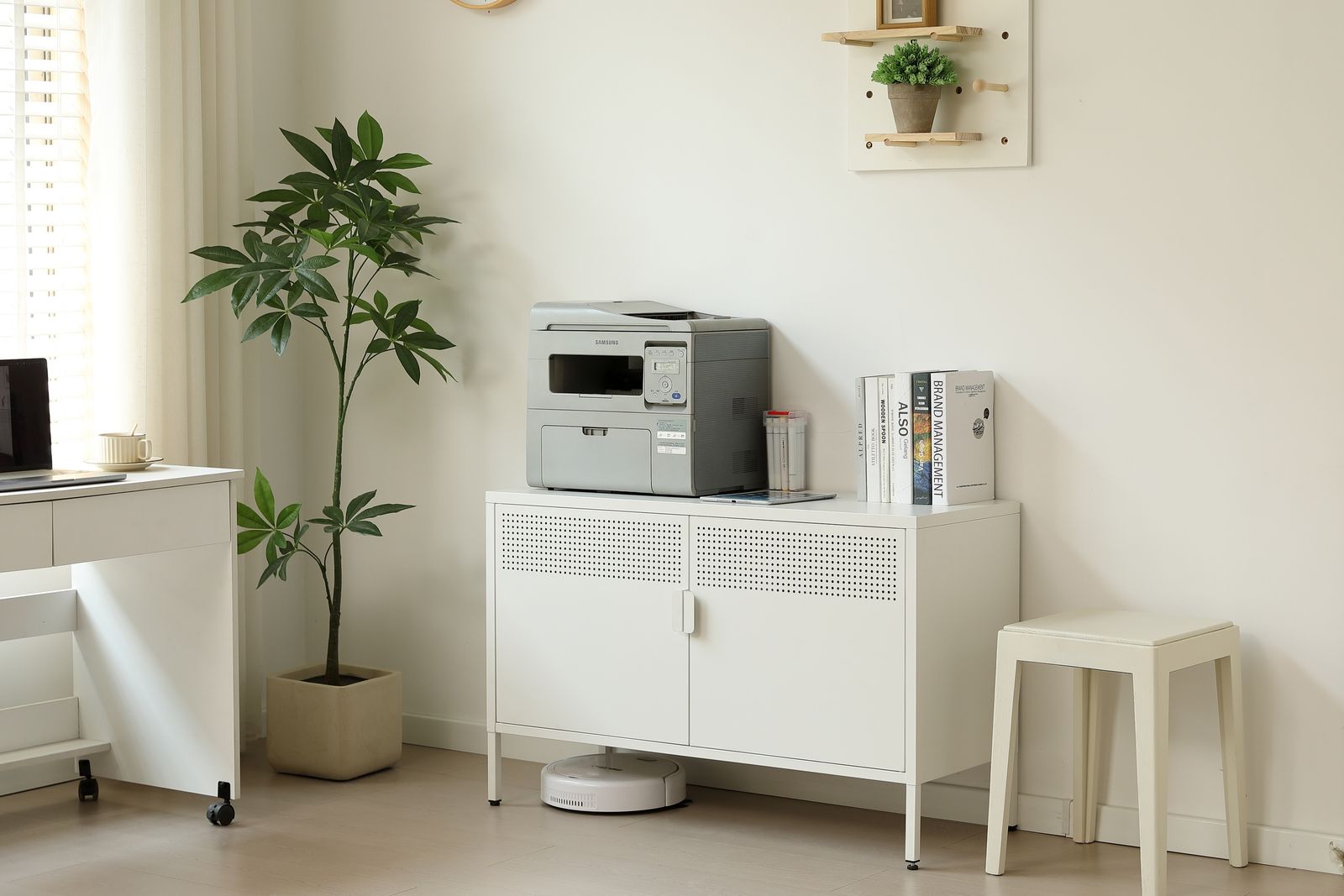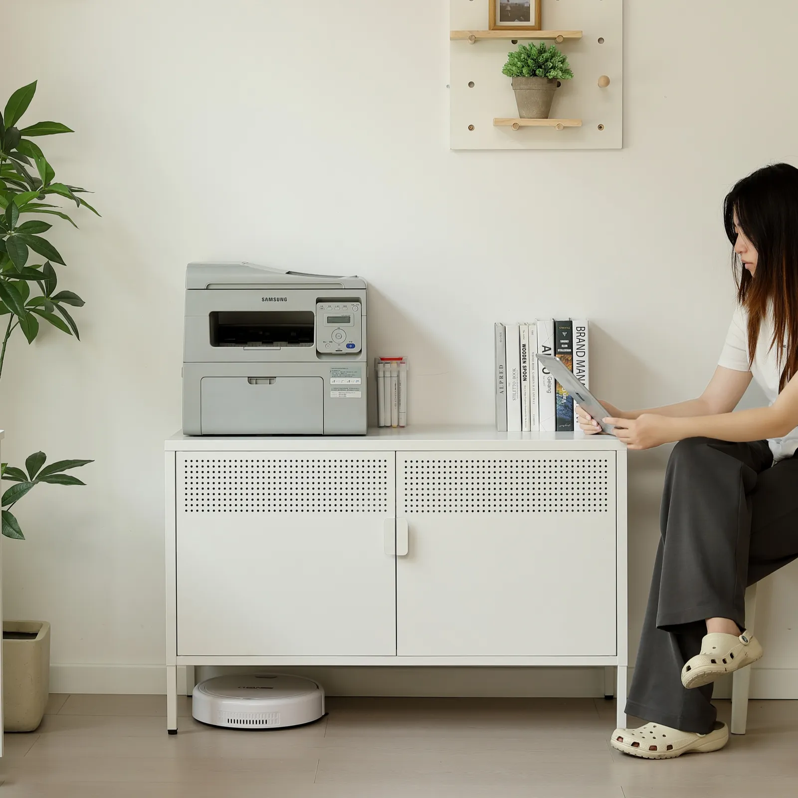 【洗練されたモダンなデザイン】収納力と洗練されたデザインを兼ね備えたメタルキャビネットはリビングルームをより魅力的な空間へと変えることができます。全面ドア付きデザインで、中身の雑多な収納物をすっきりカバー。生活感を見せたくないリビングや、書類が散らかりがちなホームオフィスに最適です。