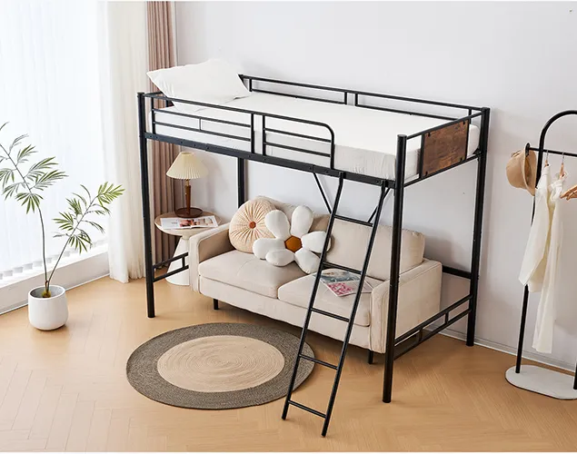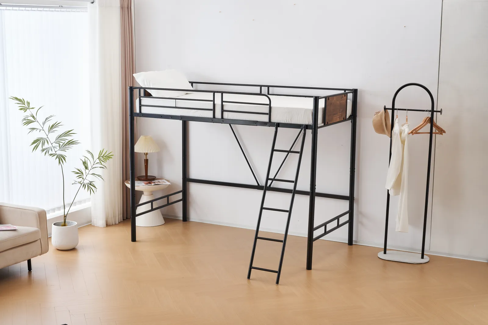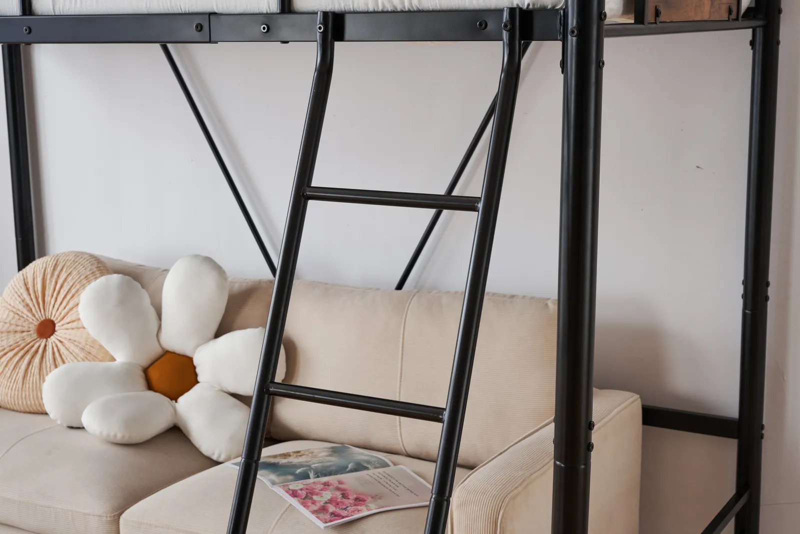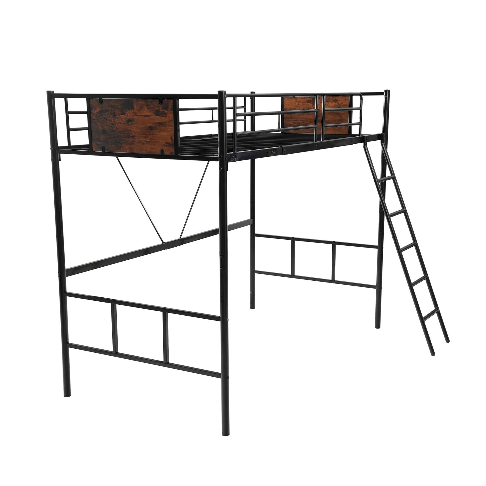ロフトベッド パイプベッド シングル 木 収納 北欧風 子供部屋 送料無料 スチール 耐震 ベッド SDG 【ブラック】