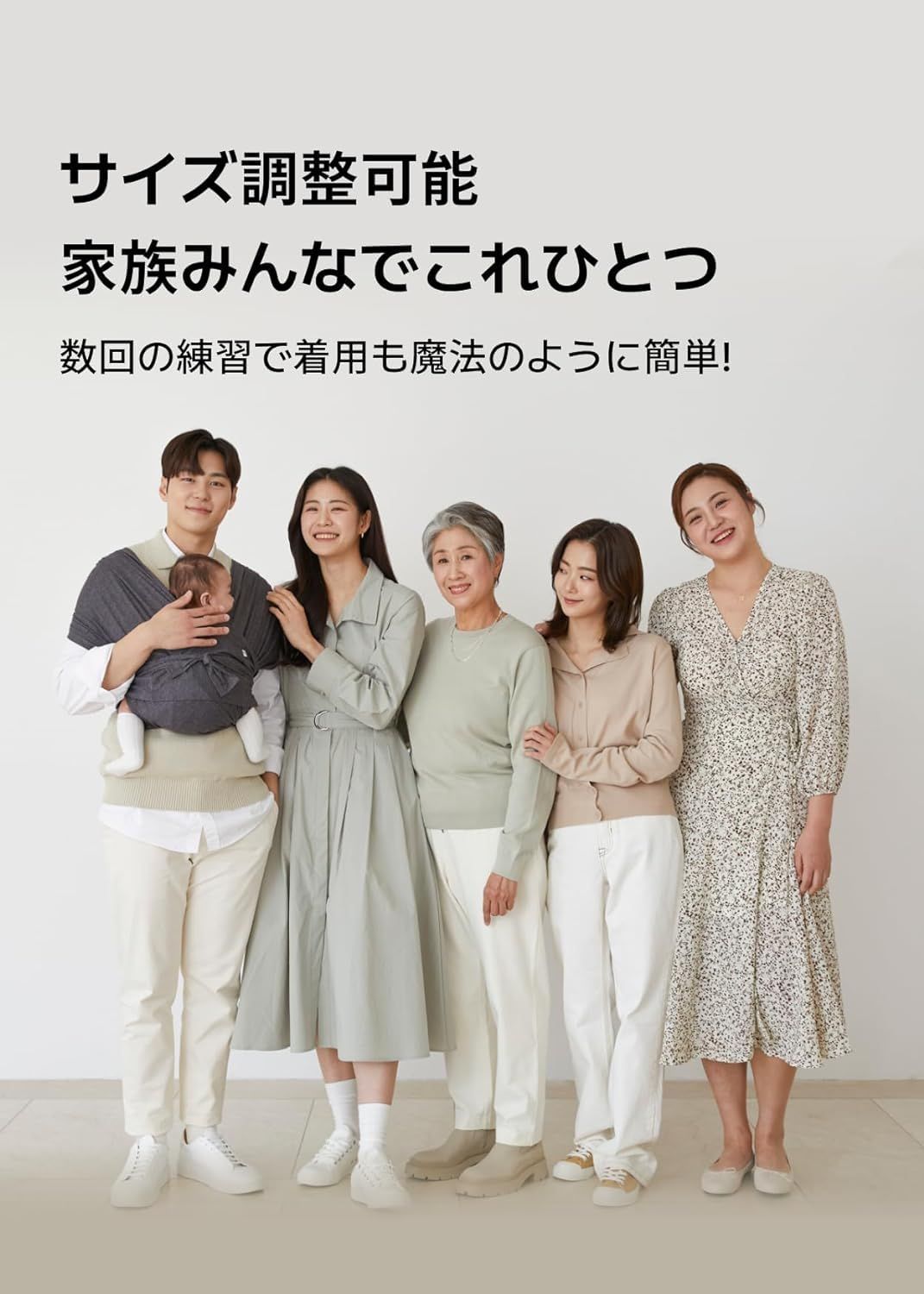 【超簡単&安全なサイズ調節】抱っこした状態でサイズ調節ができるからさらに便利!ウエスト部分のサイズコントローラーで赤ちゃんを抱っこしたまま自分の体に合わせて簡単に調節できます。また、飛行機のシートベルト原理を適用したサイズコントローラーは赤ちゃんの体重を利用してしっかり固定、より安全です。